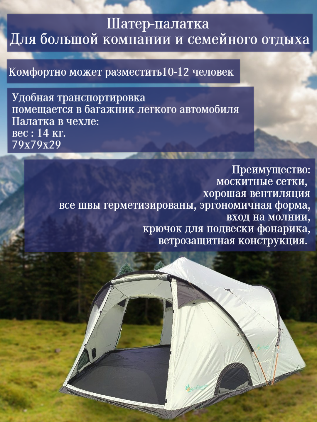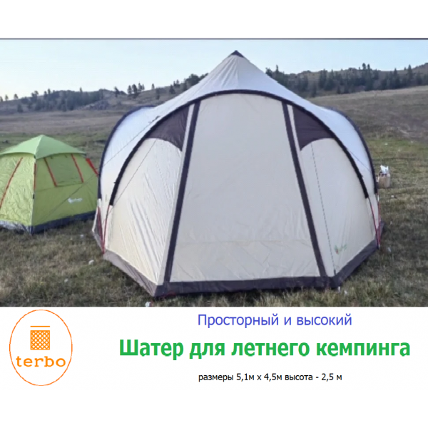 2908: Просторный и высокий шатер-палатка для летнего кемпинга Terbo Mir 2-908 интересное: