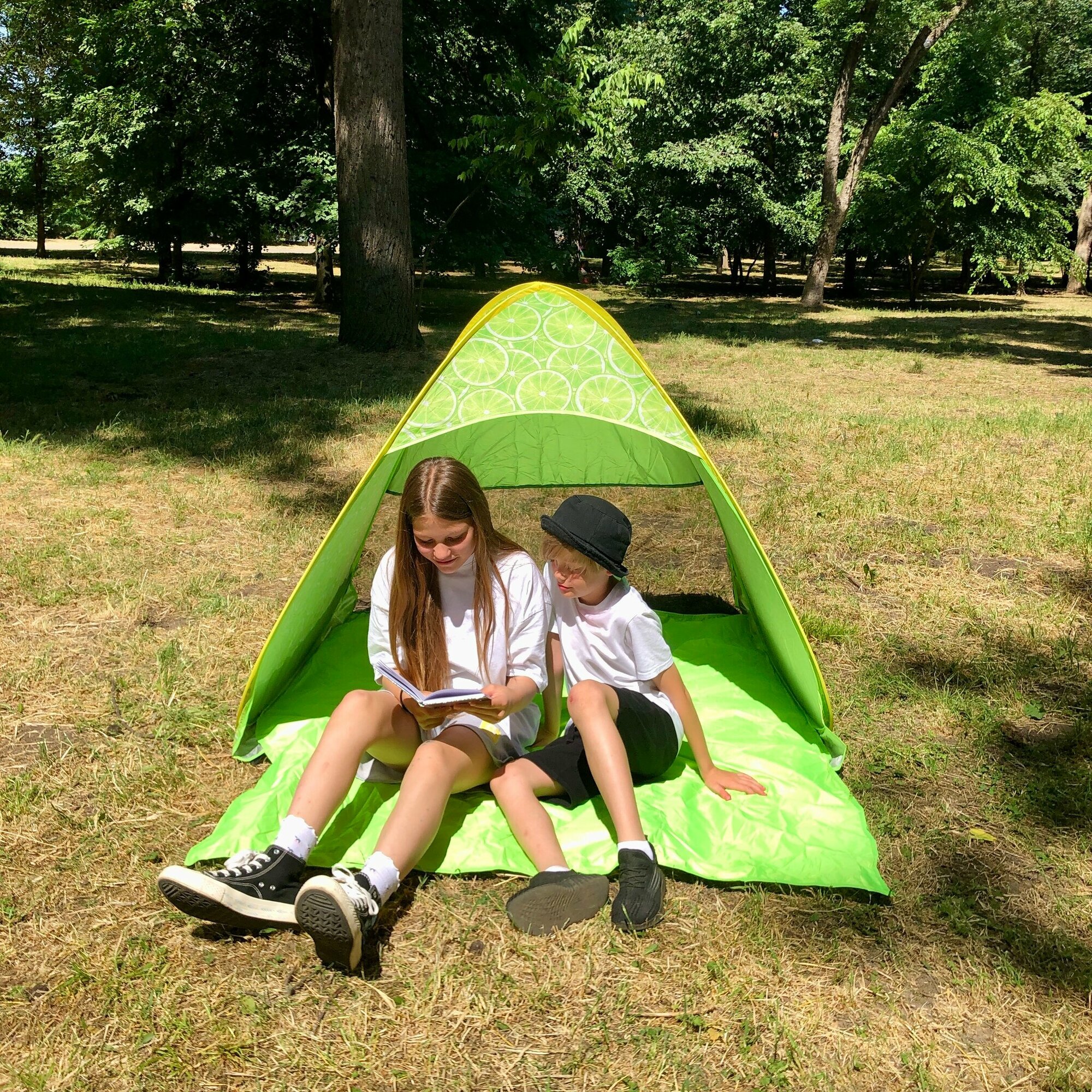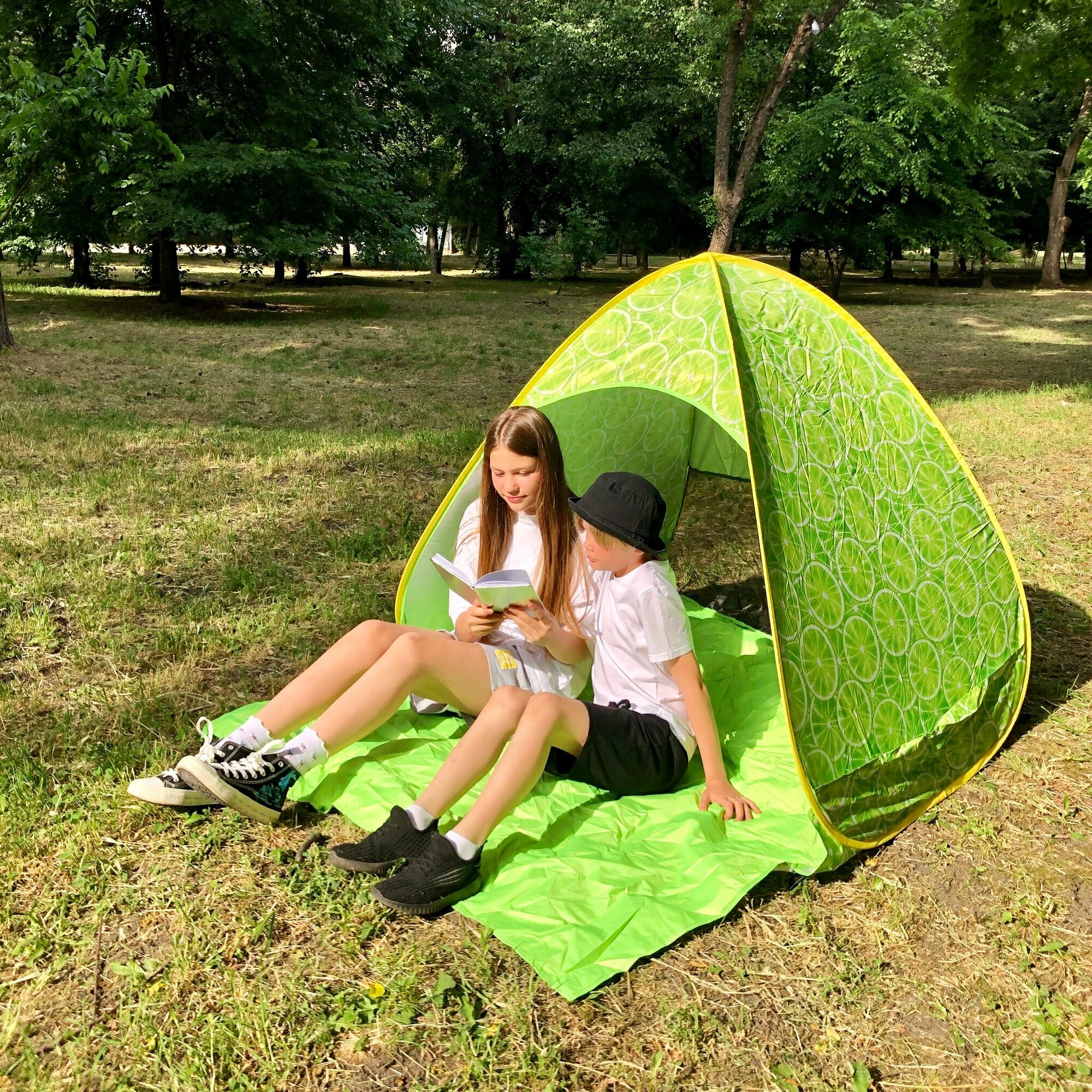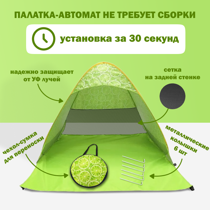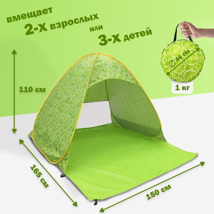 Палатка 2-местная пляжная автоматическая 150х165х110см / тент от солнца (автомат не требует сборки) (Лайм) интересное: