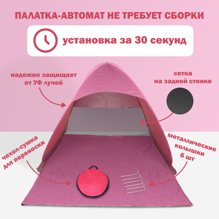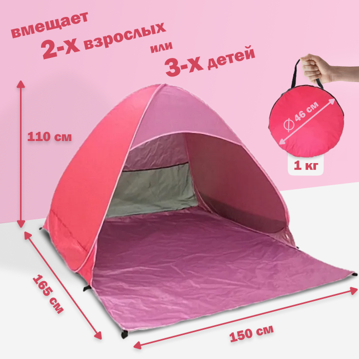 Палатка 2-местная пляжная автоматическая 150х165х110см / тент от солнца (автомат не требует сборки) (Розовый) интересное: