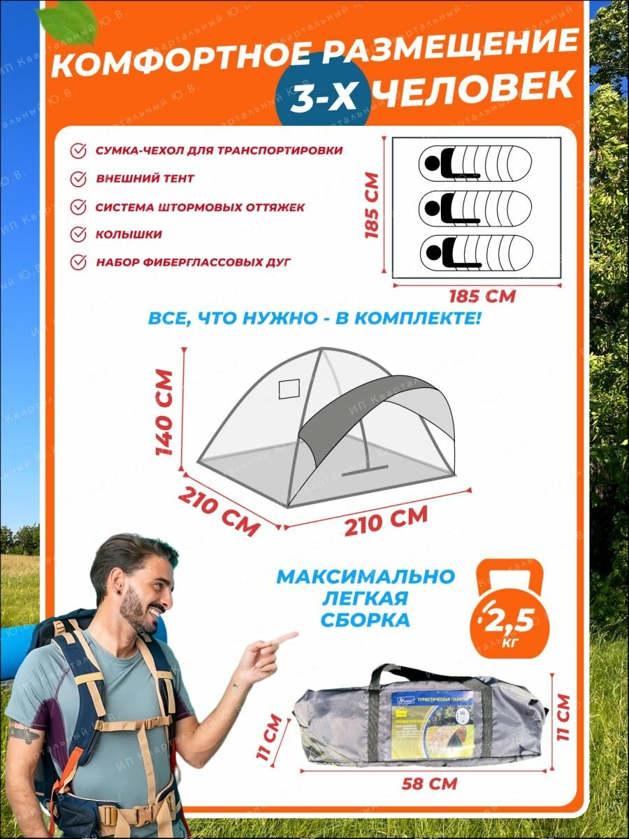 Палатка туристическая 3-х местная 1624 интересное: