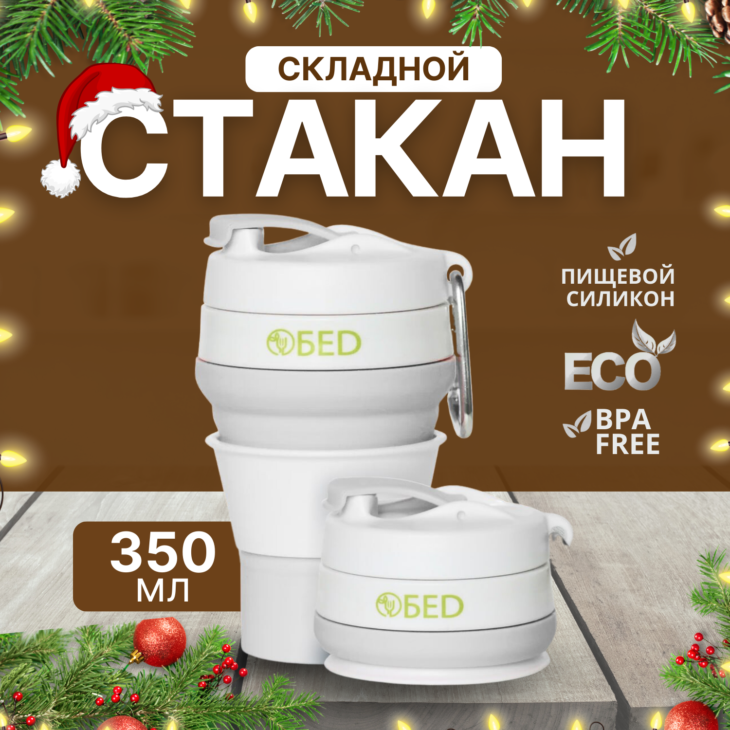 Стакан складной силиконовый c крышкой для воды, для кофе, чая, виски, коктейлей, для пикника , 480 мл , обеd