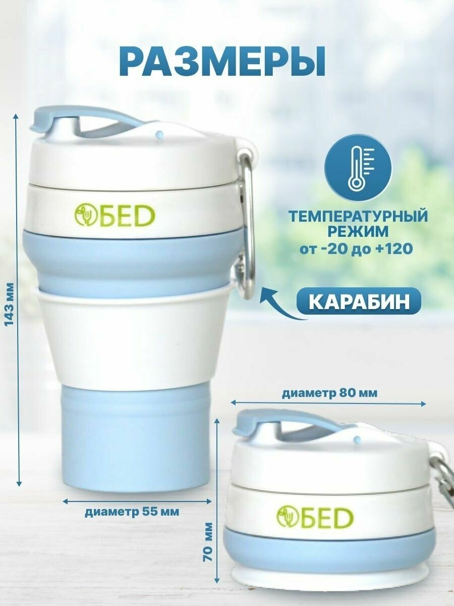 Стакан складной силиконовый c крышкой для воды, для кофе, чая, виски, коктейлей, для пикника , 480 мл , обеd