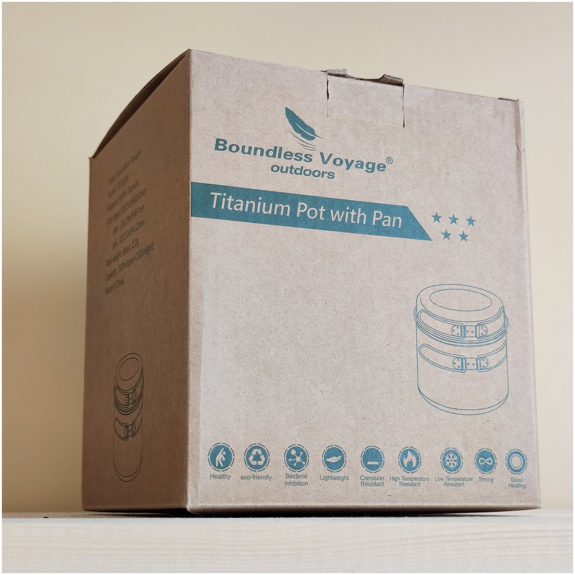 Походный титановый котелок с крышкой-миской 1500+500 мл Boundless Voyage интересное: