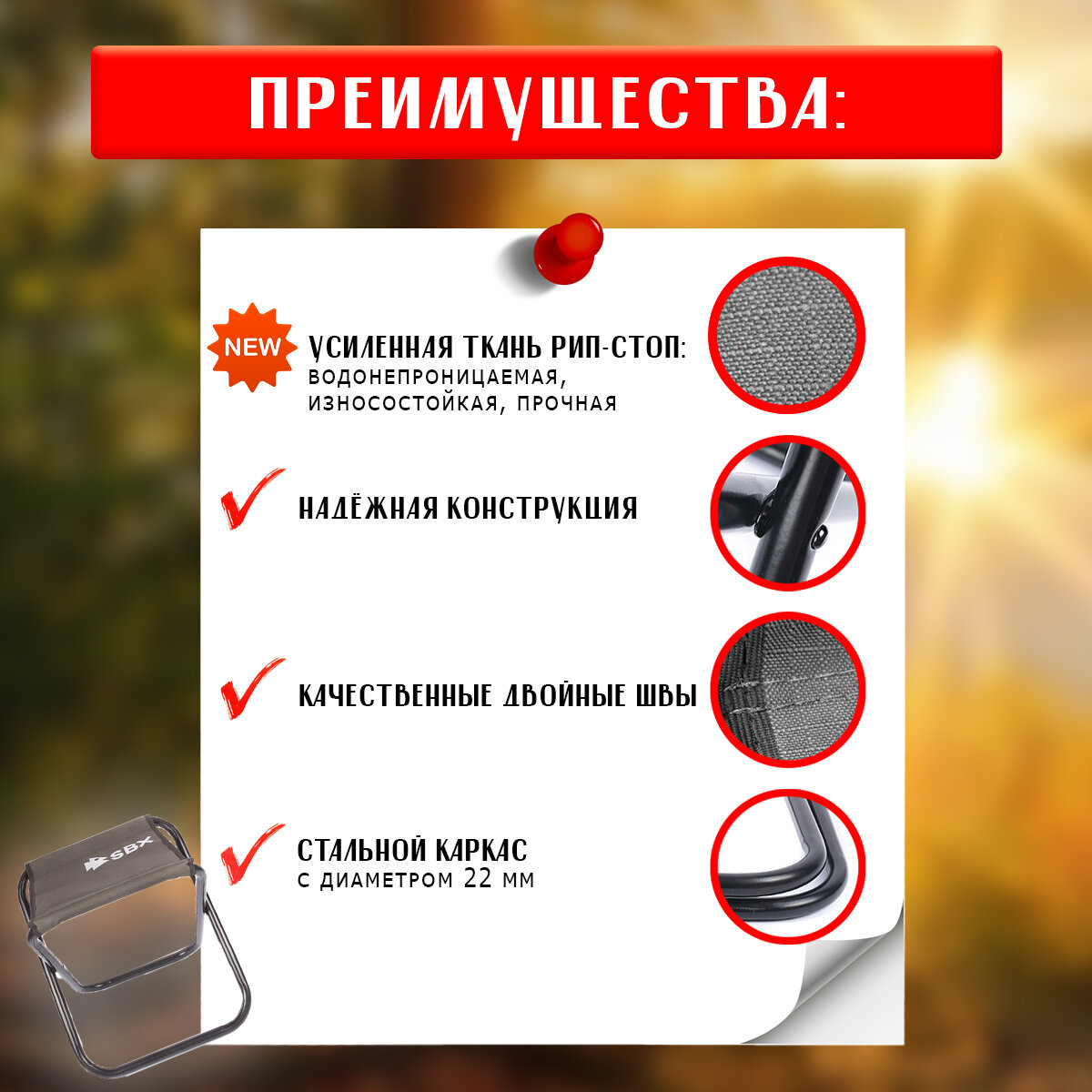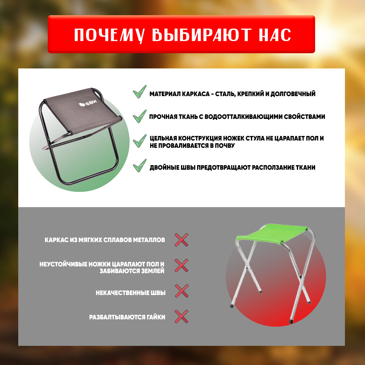 Табурет складной туристический SBX STM-03, выдерживает нагрузку до 120 кг., цвет Хаки интересное: