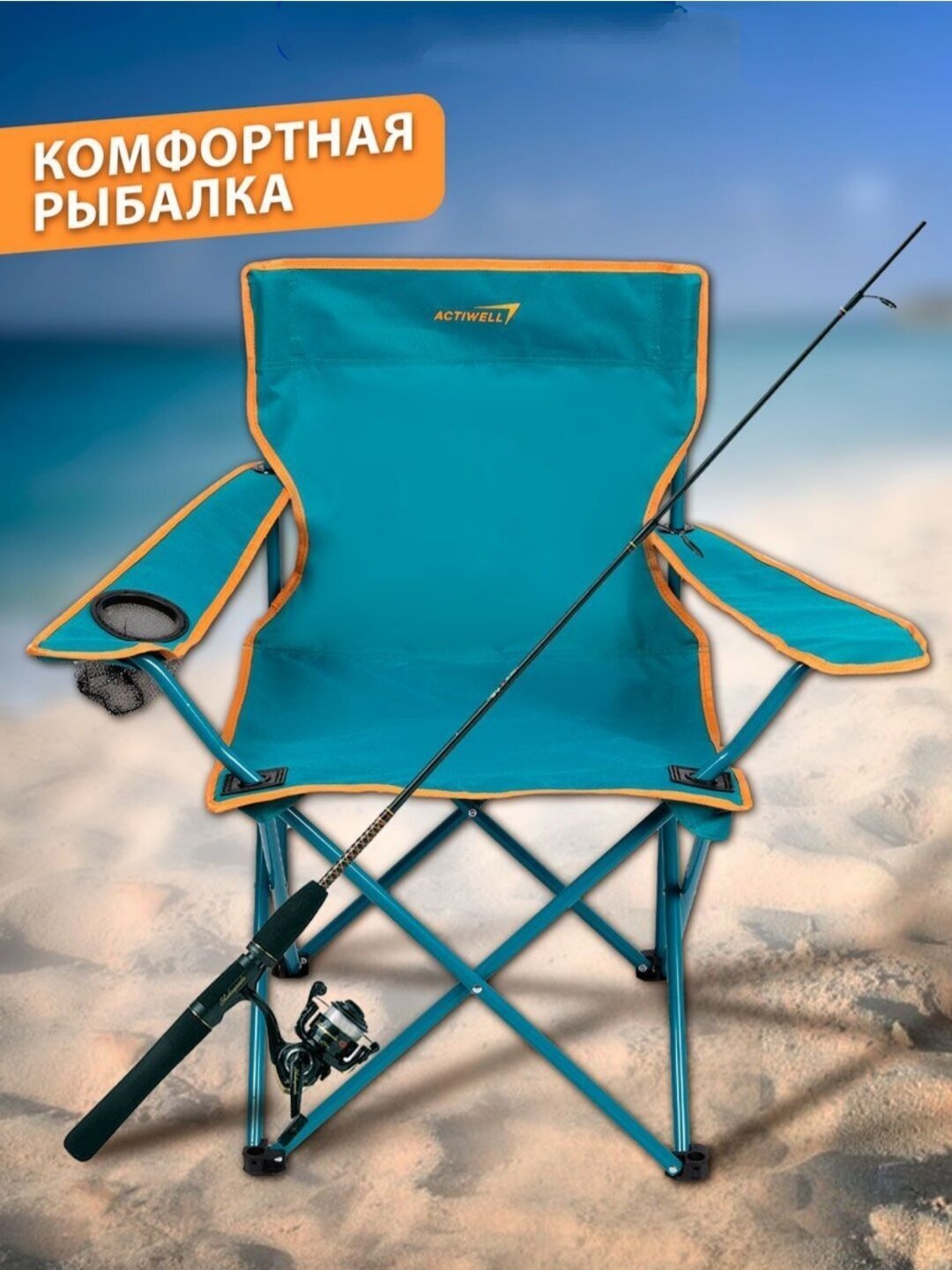 Кресло складное туристическое, стул для пикника и рыбалки, садовое кресло ACTIWELL, бирюзовое, 50х50х80см, до 100кг интересное:
