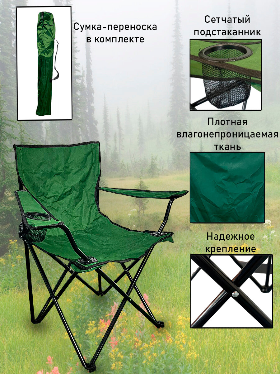 Кресло складное туристическое TERBO с подстаканником , вес до 100 кг, цвет милитари камуфляж