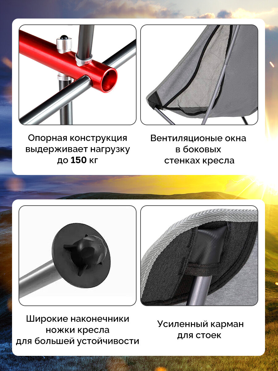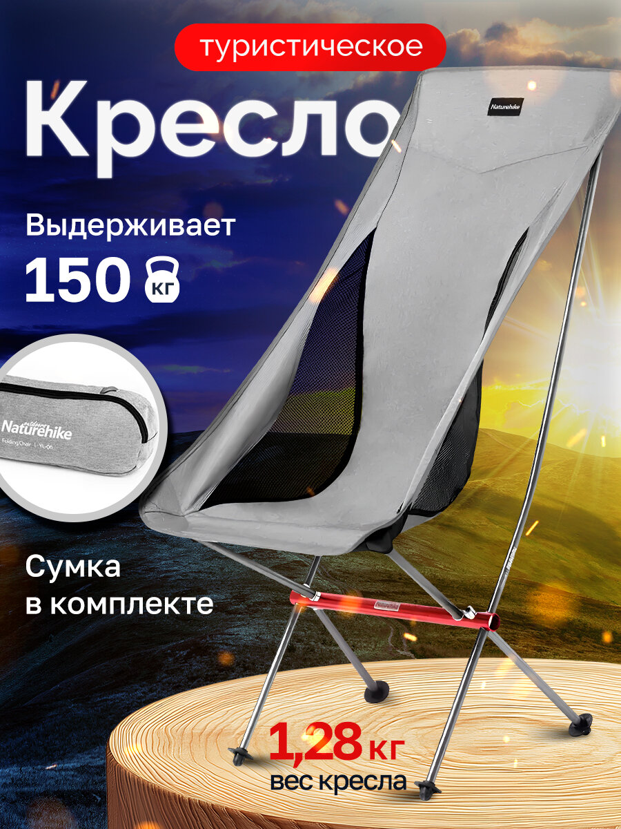 Кресло туристическое Naturehike YL06 складное, серое, высокая спинка, до 150 кг интересное: