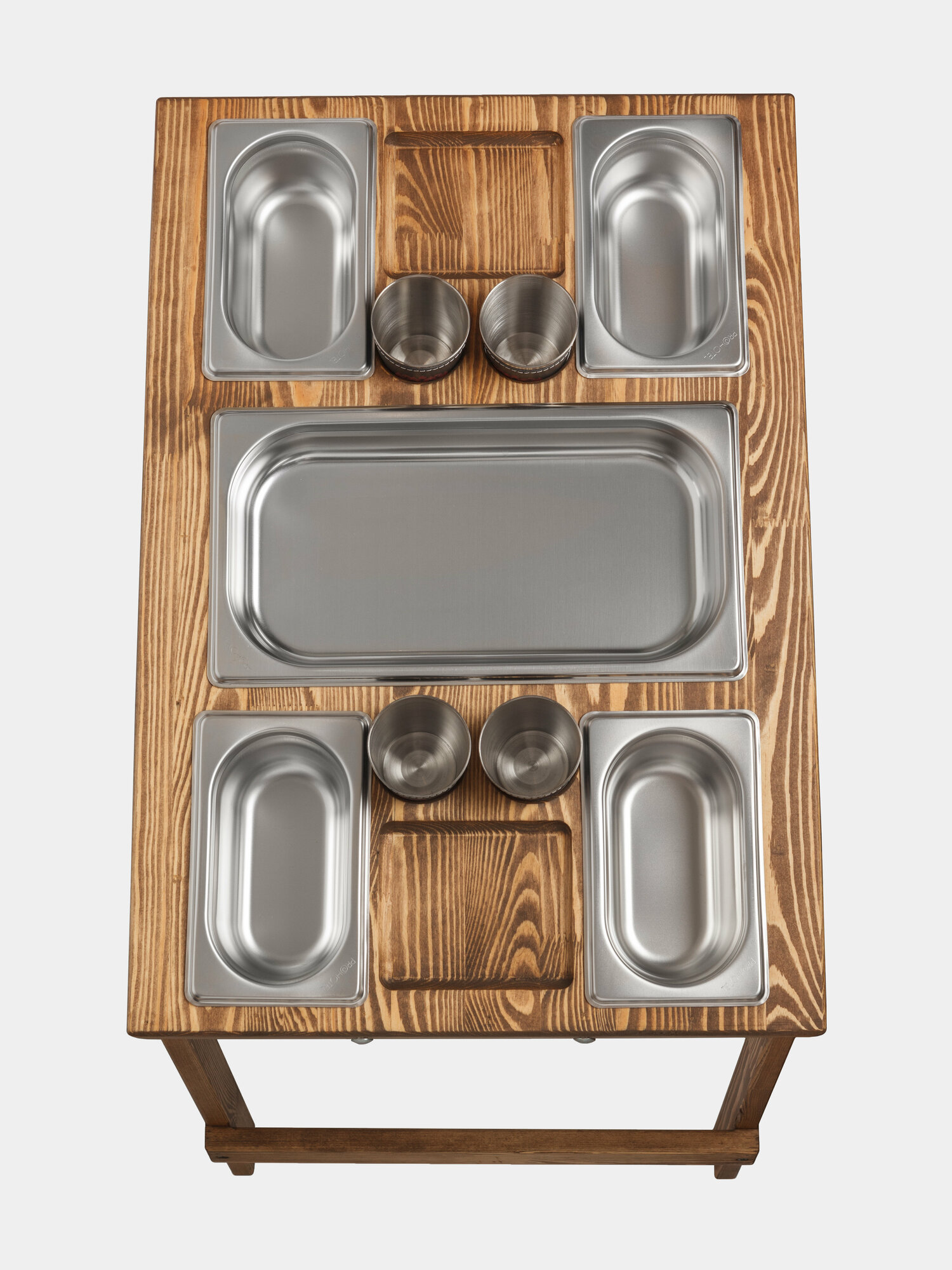 | Подробная комплектация | столик деревянный -1шт, емкость -1шт, емкость 500мл - 4шт, стакан 200мл - 4шт, чехол для хранения - 1шт. |