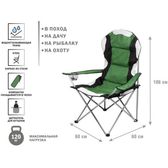 Купить Кресло складное ARIZONE с держателем для бутылок и чехлом зеленое (42-606001)