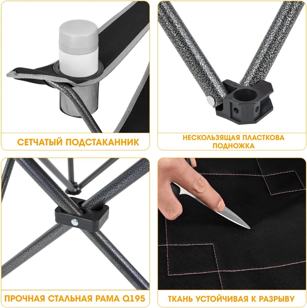| Подробная комплектация | складное кресло, сумка для переноски,подвесной карман для мелочей |