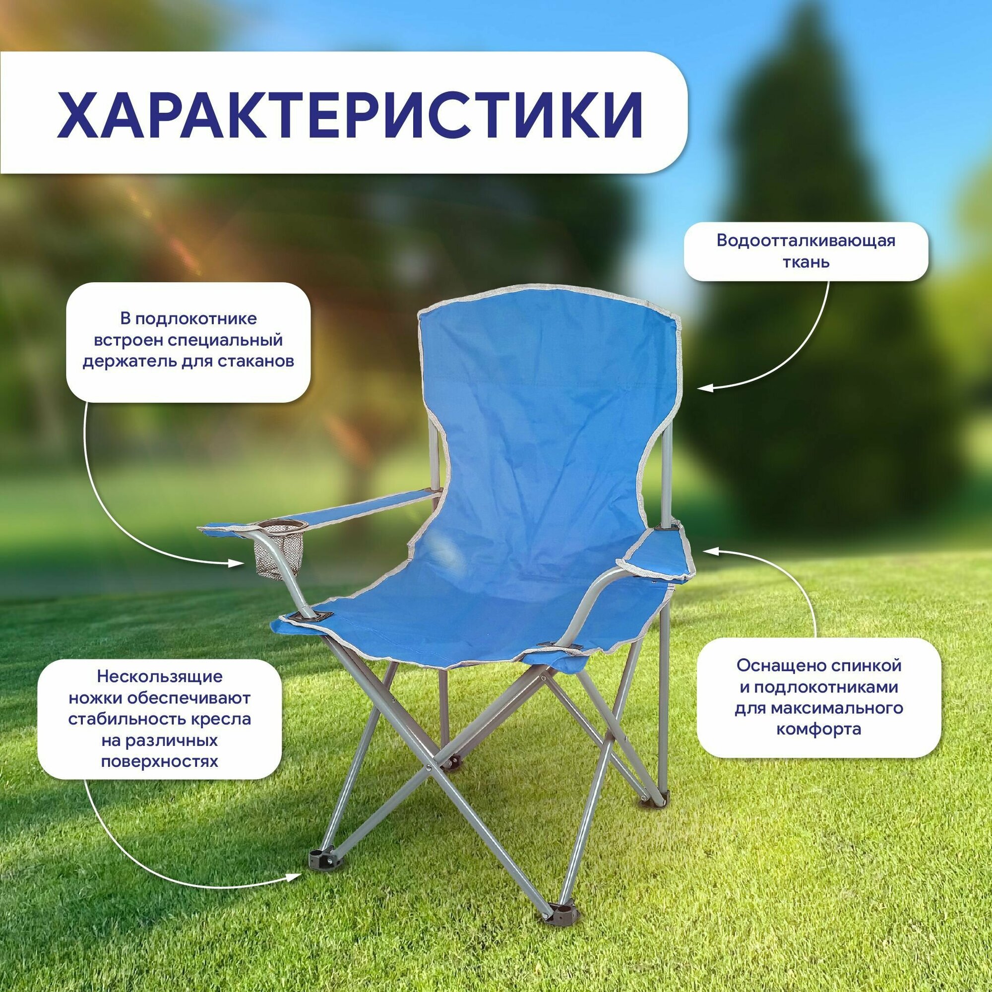 Стул складной туристический со спинкой и подстаканником, чехол, цвет: голубой интересное:
