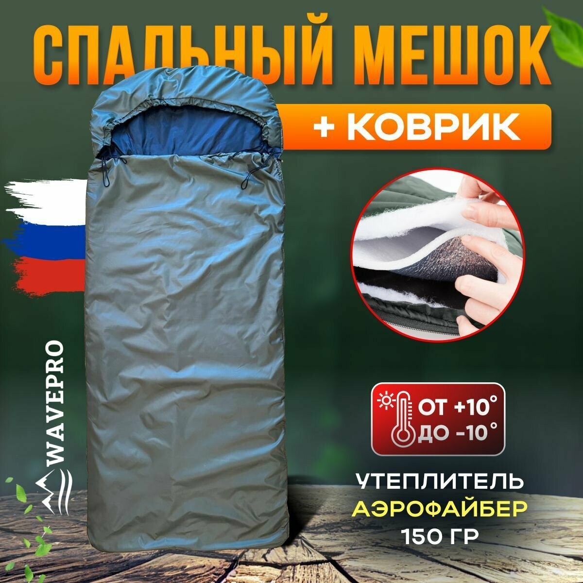 Спальный мешок-одеяло + коврик внутри мешка 220 на 90 интересное: