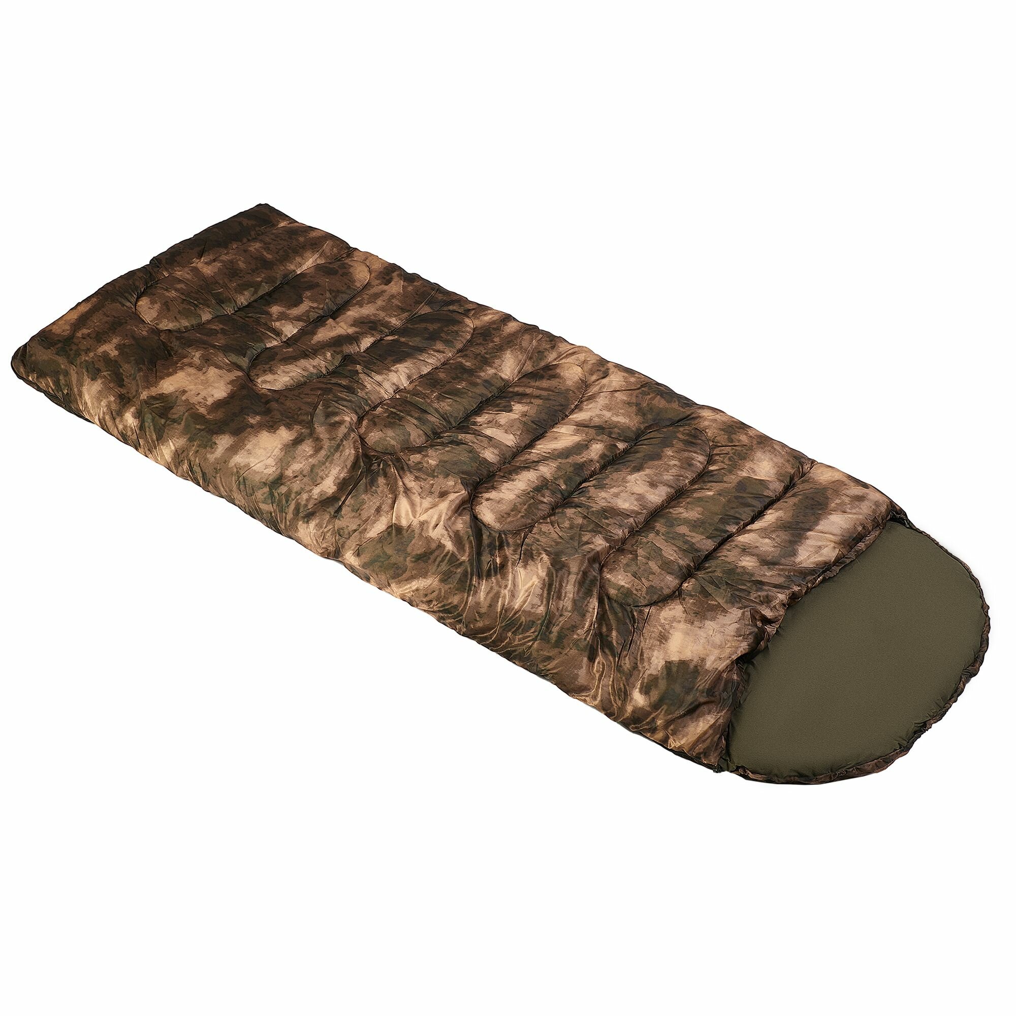 Спальный мешок с подголовником Prival Camp bag плюс, до -5C, 220х90см, камуфляж Кукла, молния слева