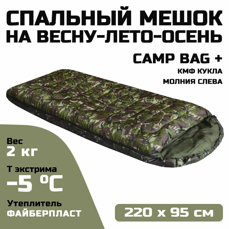 Спальный мешок с подголовником Prival Camp bag плюс, до -5C, 220х90см, камуфляж Кукла, молния слева интересное: