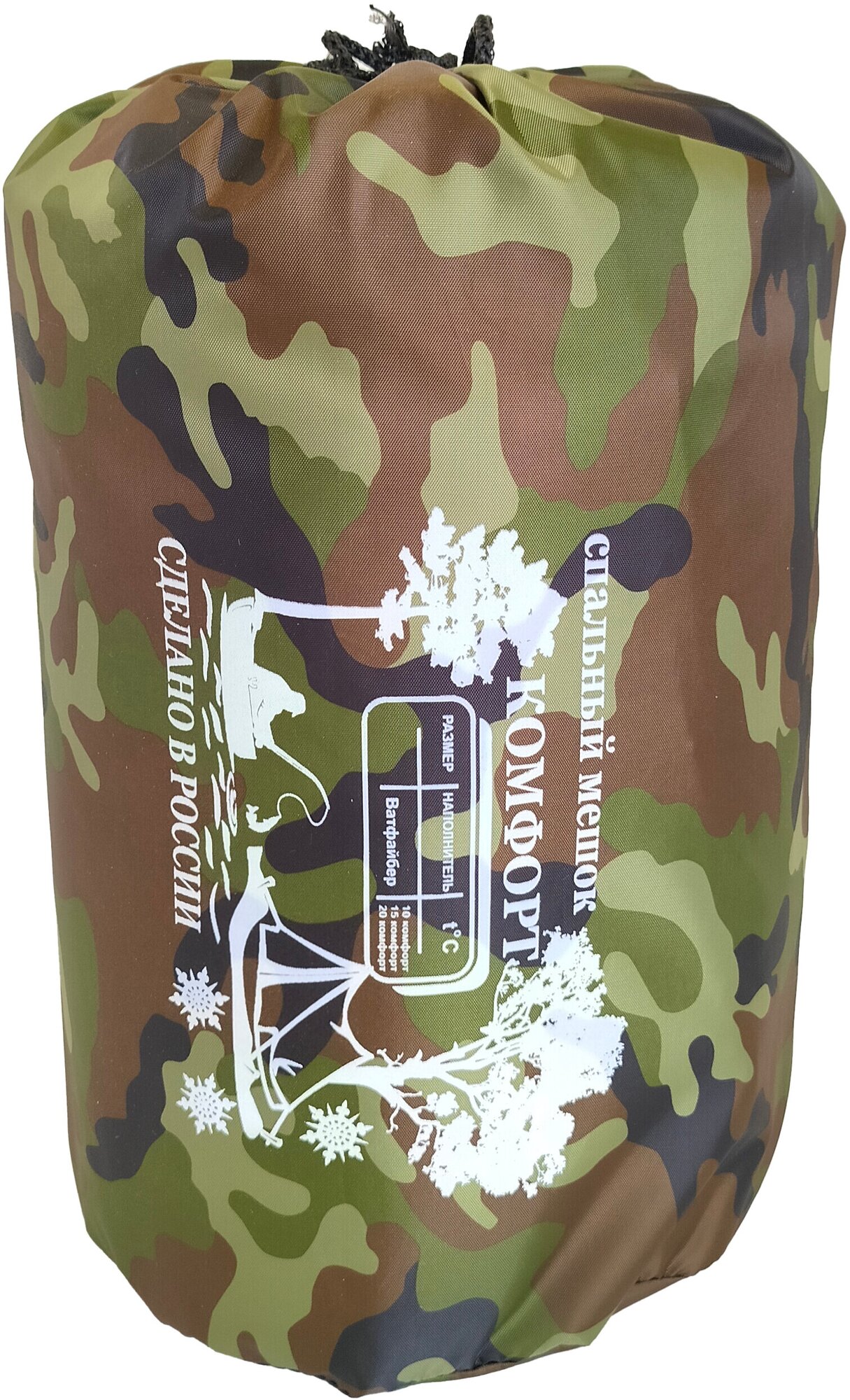 Купить Спальный мешок-одеяло "Комфорт", 0°C, цвет камуфляж, кемпинговое назначение, вес 0,9 кг