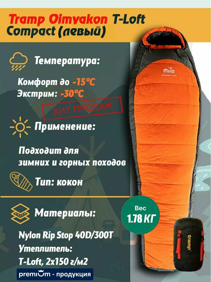 Спальный мешок Oimyakon T-Loft Compact левый интересное: