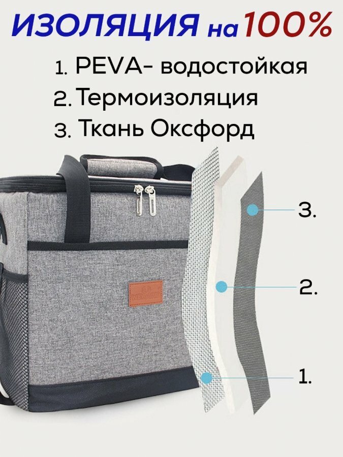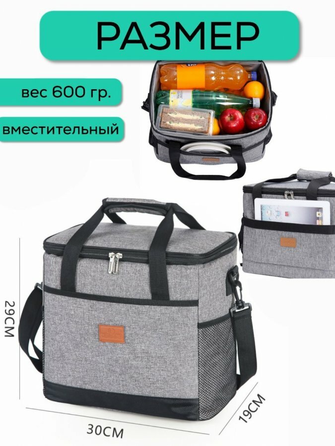 Термосумка, сумка дорожная, cумка-холодильник большой вместимости, объем 20,5 литров, размер 36*18,5*31