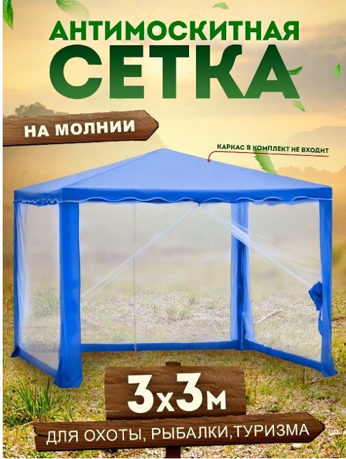 Антимоскитная сетка для палатки "Шатер", 3х3 м, (синий, 4 стороны, 2 с молниями) интересное: