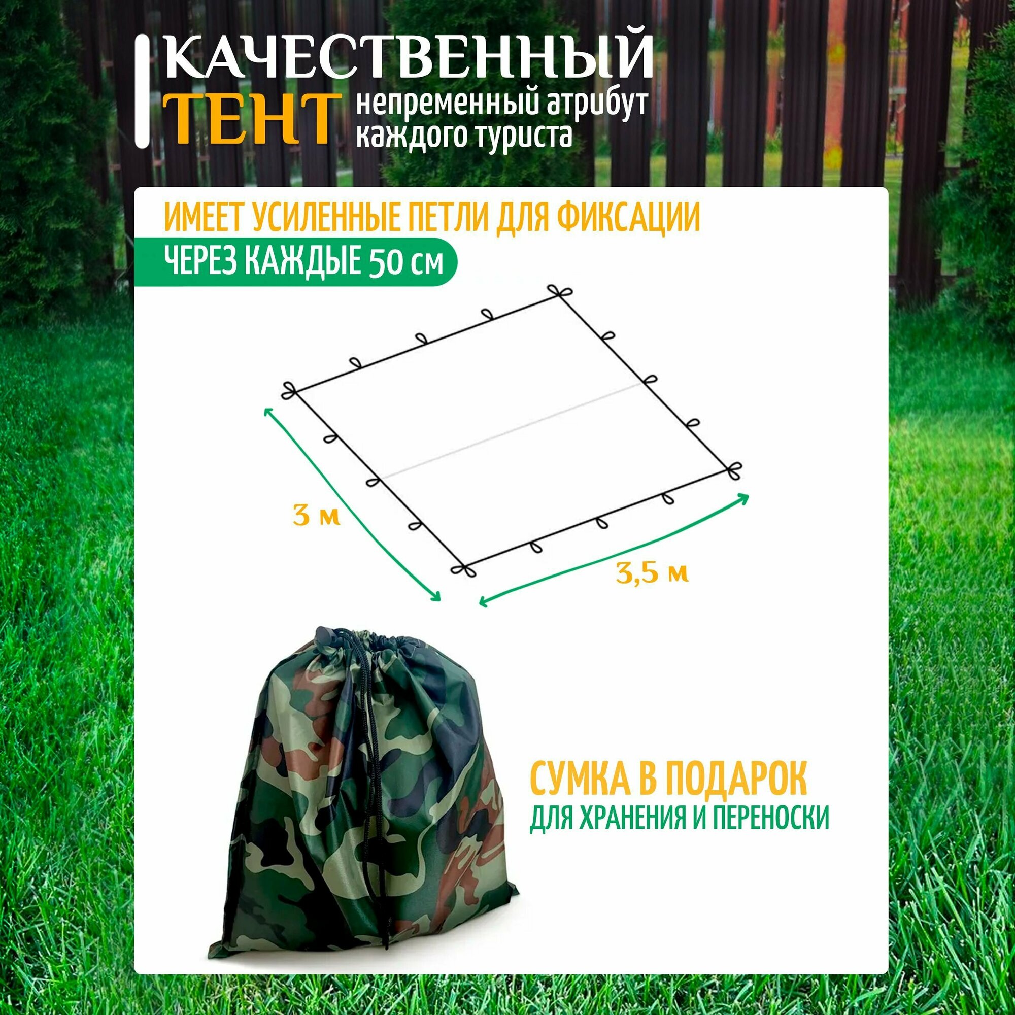 Тент туристический 3 х 3.5 м, камуфляж, навес, полог, походный, тент укрывной от дождя и солнца