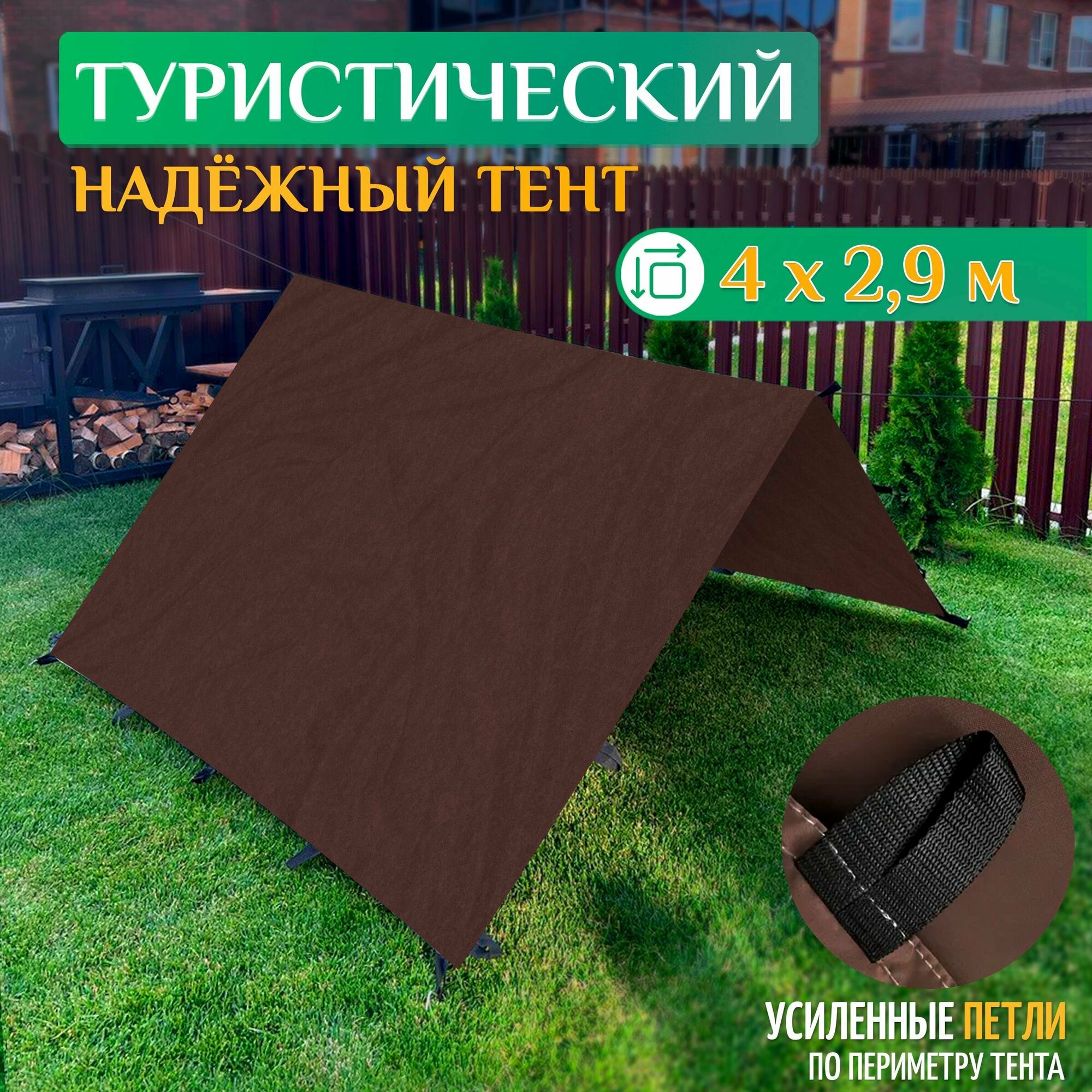 Тент туристический 4 х 2.9 м, коричневый, навес, полог, походный, тент укрывной от дождя и солнца