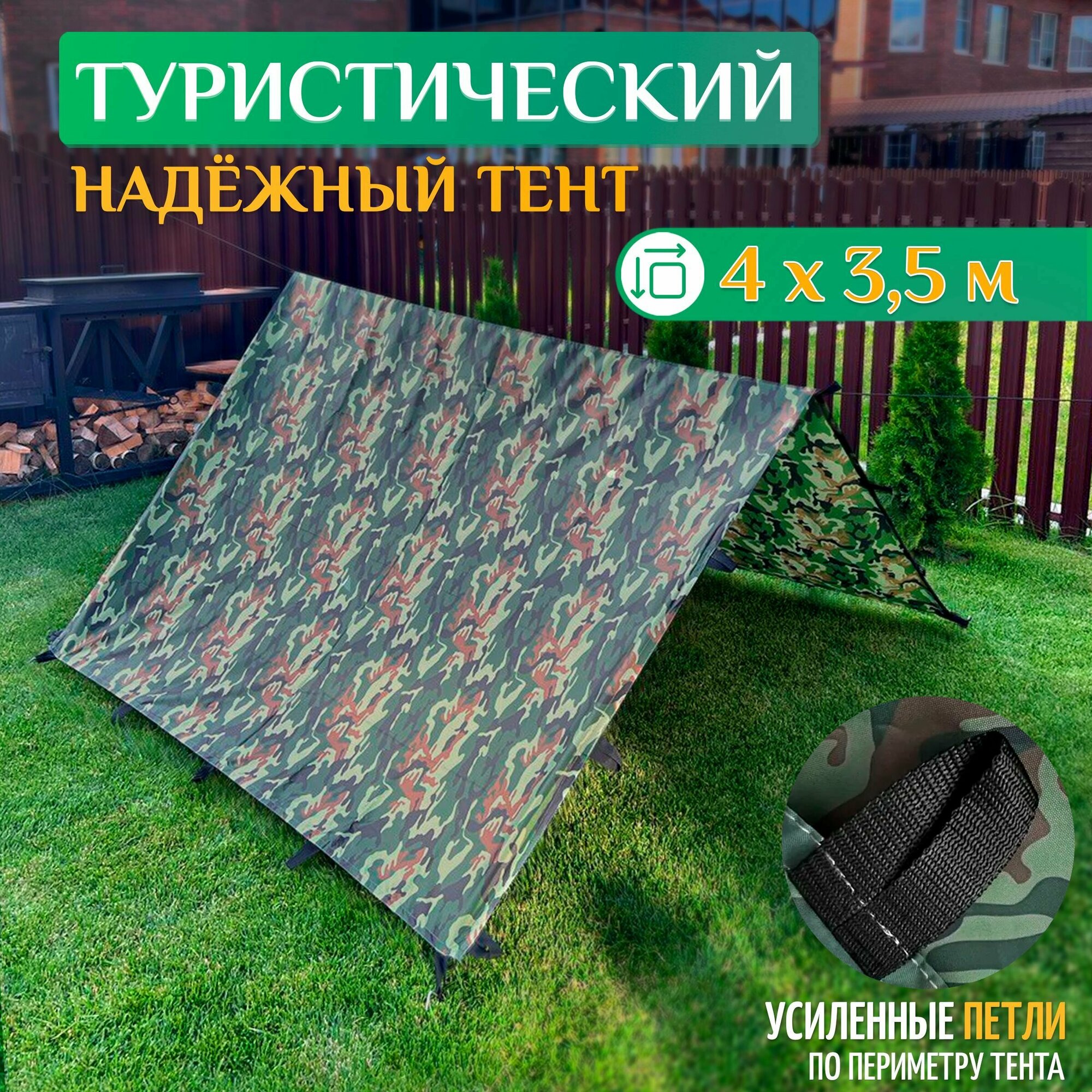 Ниже Вы можете прочитать отзывы на Тент туристический 4 х 3.5 м (камуфляж), ознакомится с подробными характеристиками, посмотреть интересные обзоры и фотографии на Тент туристический 4 х 3.5 м (камуфляж).
