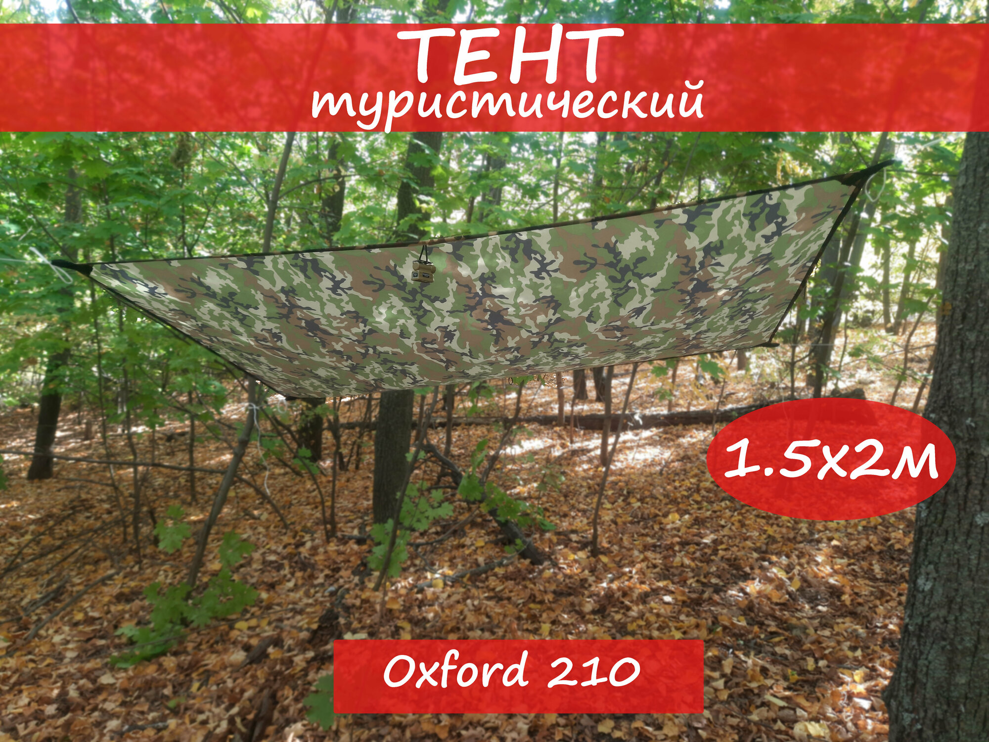 Туристический водоупорный мини-тент Оксфорд 210D камуфляж Woodland 1,5х2,2 м/ Навес/ Полог/ Укрытие