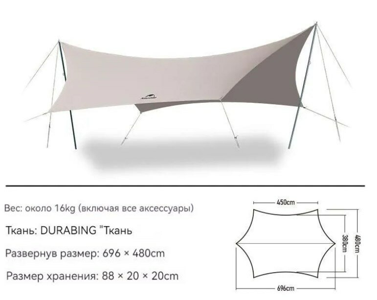 Тент кемпинговый Naturehike Lianyun, алюминиевый каркас, золотистый 690х480 мм интересное: