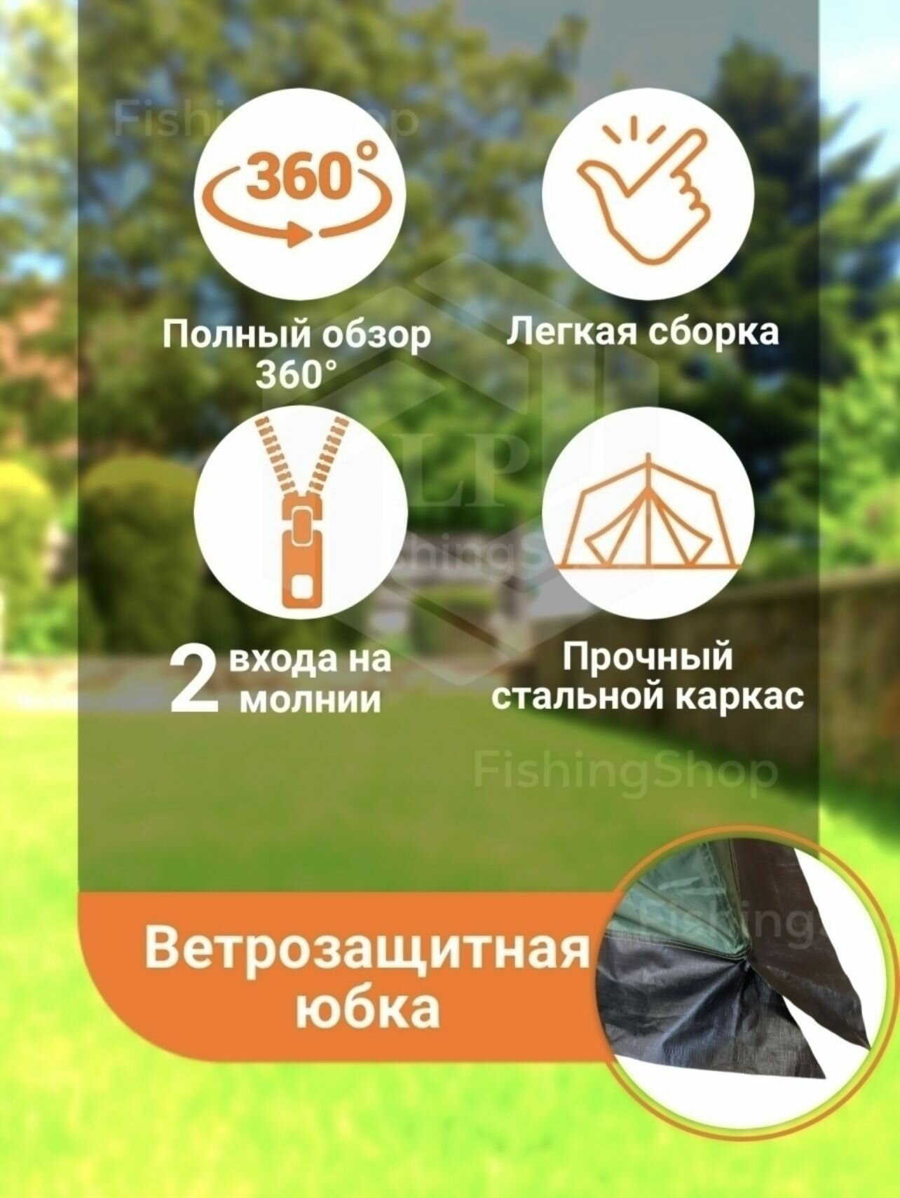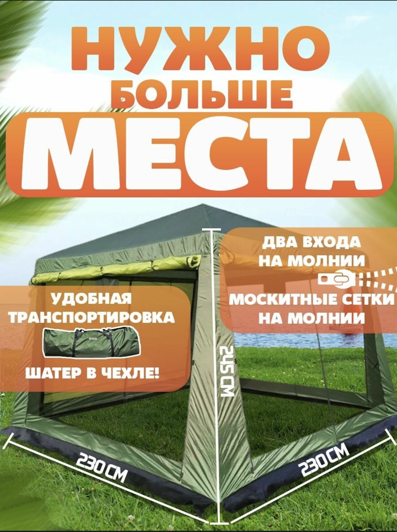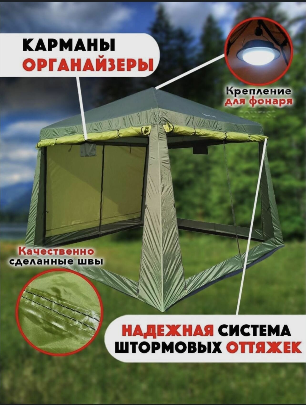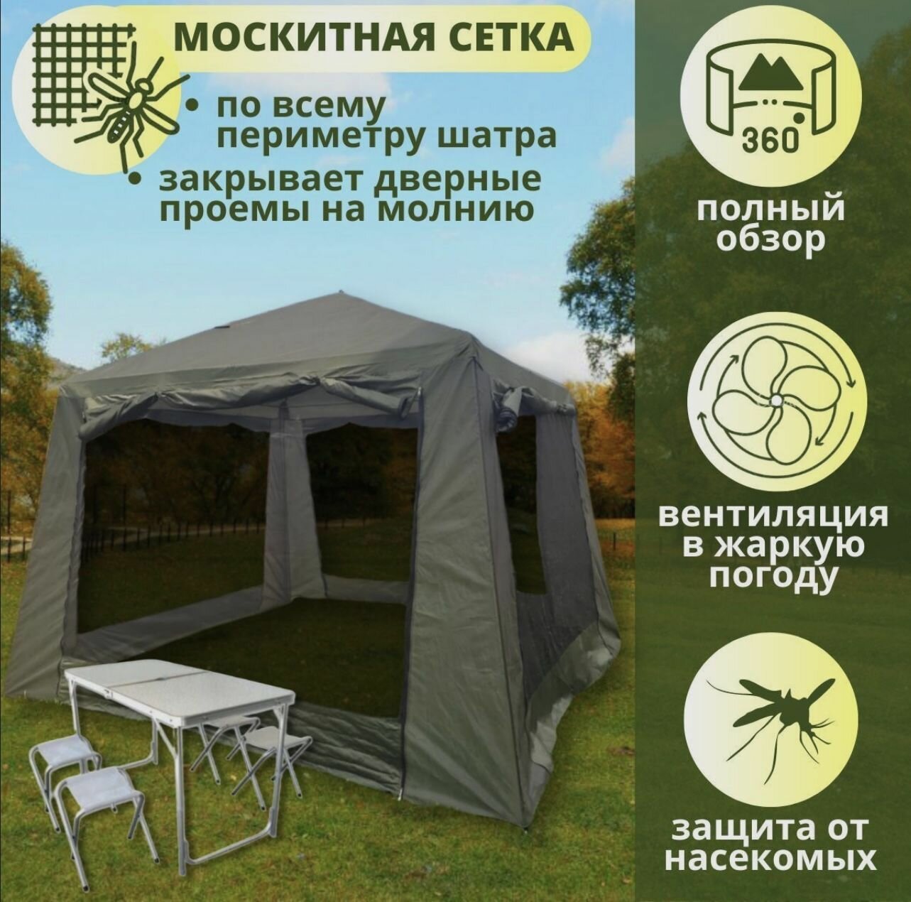 Палатка-шатер-кухня ветрозащитная юбка усиленный каркас 4 москитные сетки 2 входа Органайзер интересное: