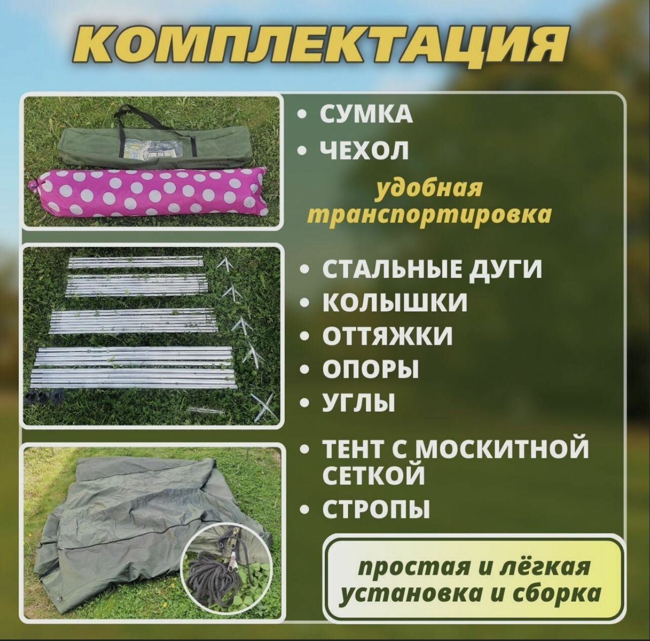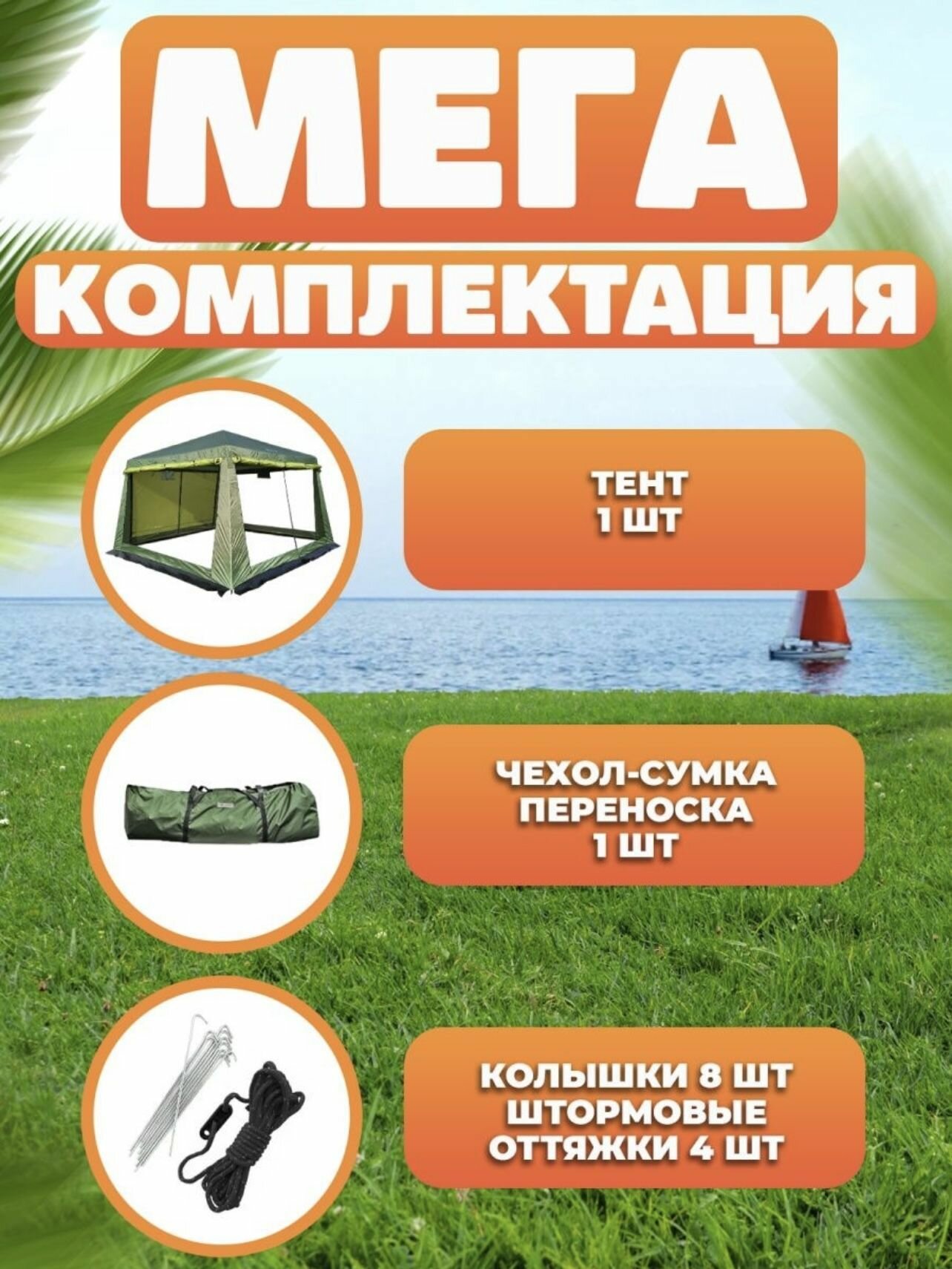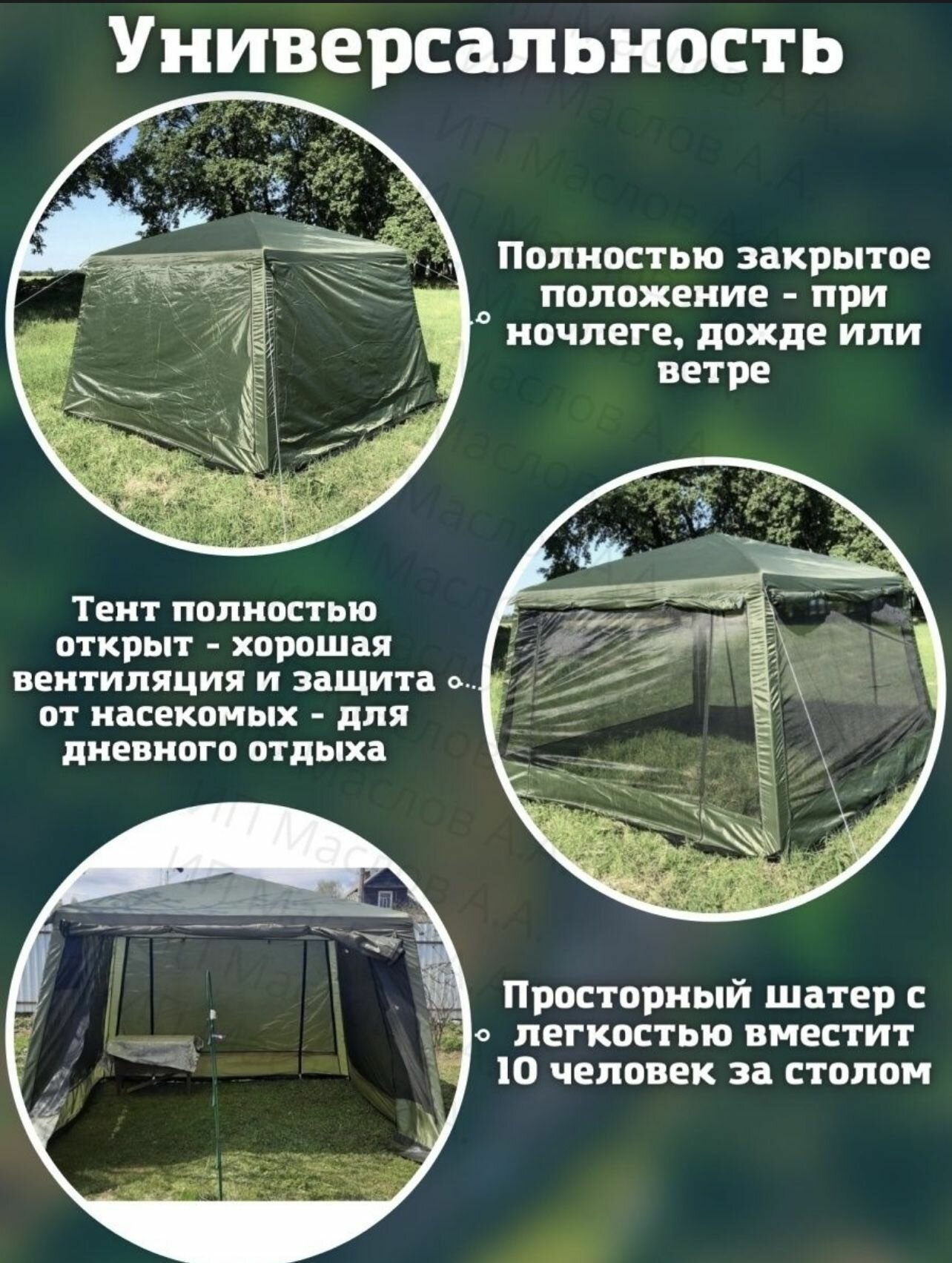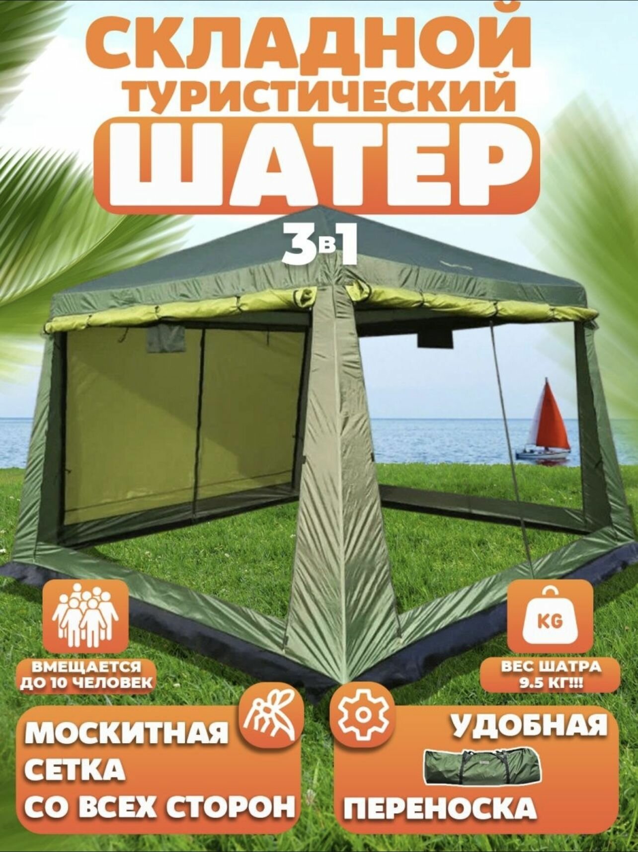 Палатка-шатер-кухня ветрозащитная юбка усиленный каркас 4 москитные сетки 2 входа Органайзер интересное: