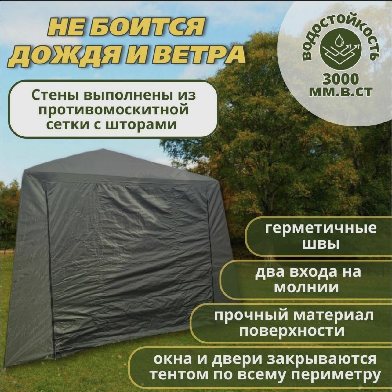 Купить Палатка-шатер-кухня ветрозащитная юбка усиленный каркас 4 москитные сетки 2 входа Органайзер