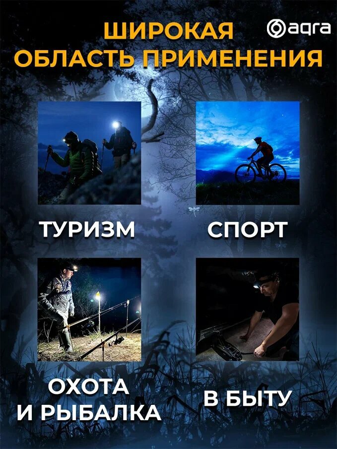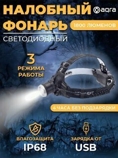 Налобный фонарь AQRA с зарядкой USB, 1800 люменов, 10000 часов, с зарядкой интересное: