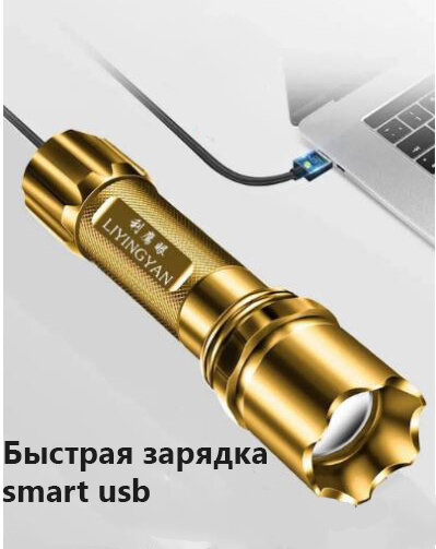 Фонарик MyPads USB перезаряжаемый мини-студенческий, портативный карманный небольшой, бытовой, дальнобойный, алюминиевый сплав интересное: