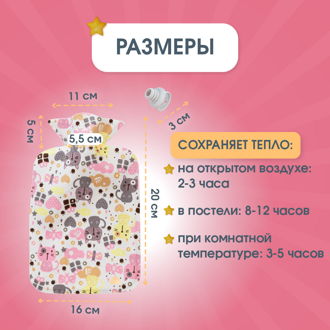 Грелка для новорожденных от коликов и животных, цветная с котом, фланелевая, 1л интересное: