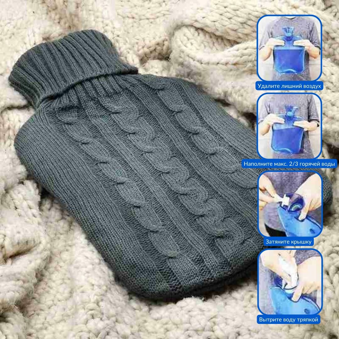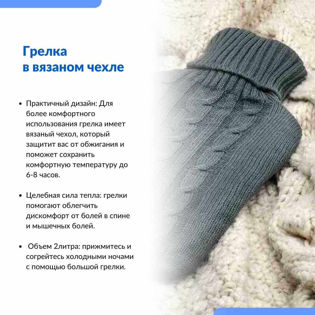 Грелка резиновая водная с вязаным чехлом объем 2 литра интересное: