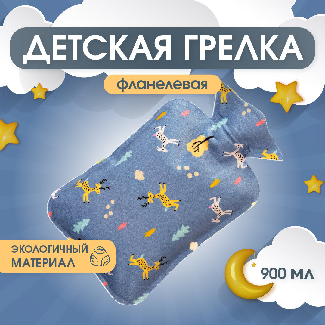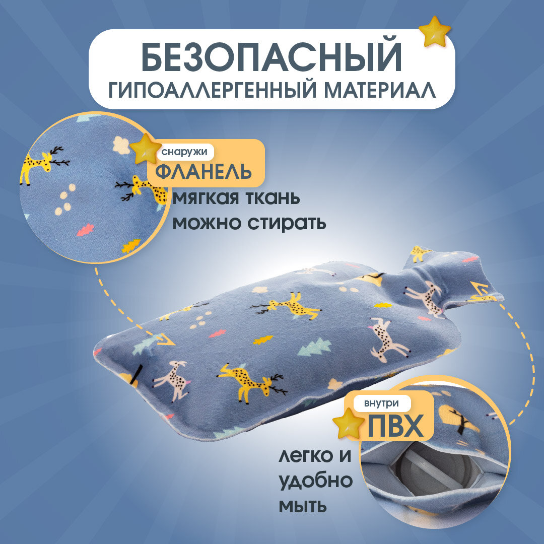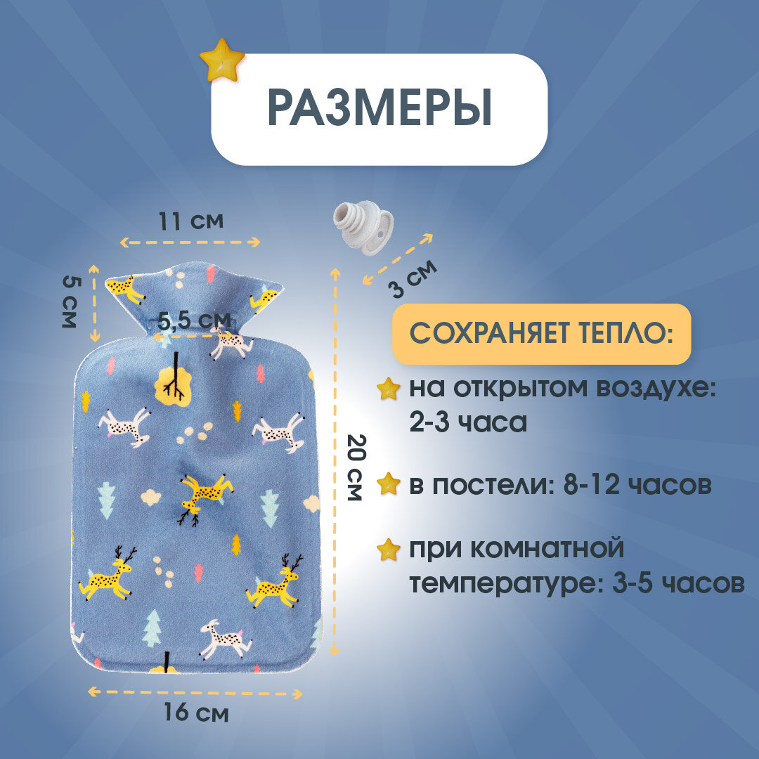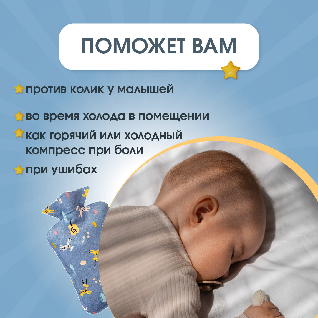 Грелка для новорожденных или кошек от коликов синяя с животными, фланелевая, 1л интересное: