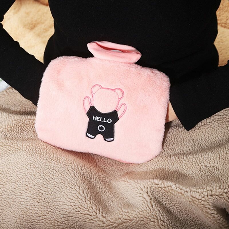 Купить Многоразовая грелка 1500 мл для живота/рук/ног с плюшевым чехлом и карманом - с медведем, розовая