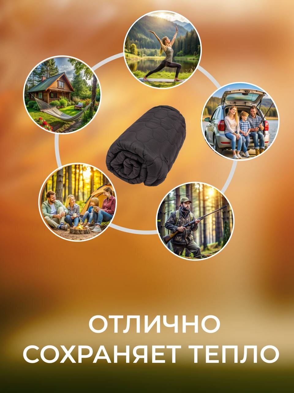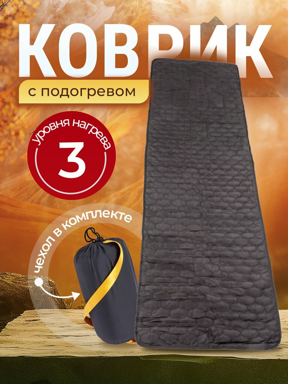 Коврик с электроподогревом / Грелка для спального мешка / Электрический матрас USB черный интересное: