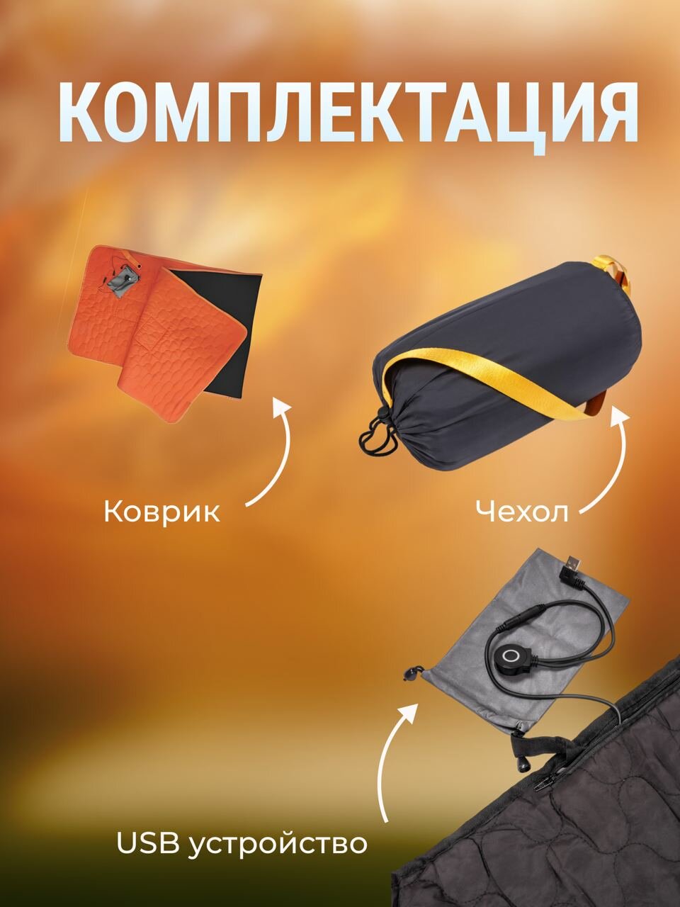 Коврик с электроподогревом / Грелка для спального мешка / Электрический матрас USB оранжевый интересное: