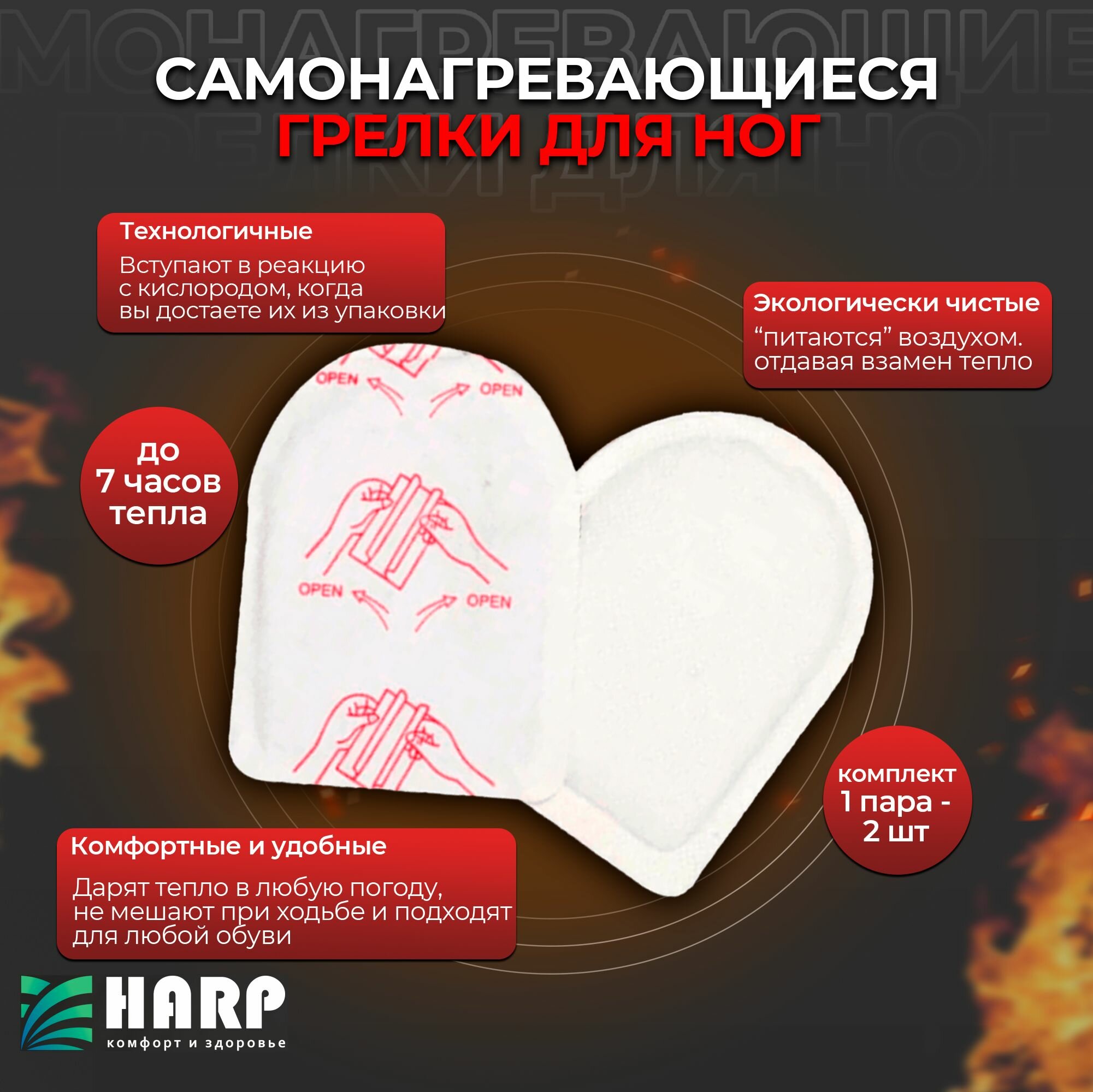 Самонагревающиеся грелки для ног HARP 2 шт интересное: