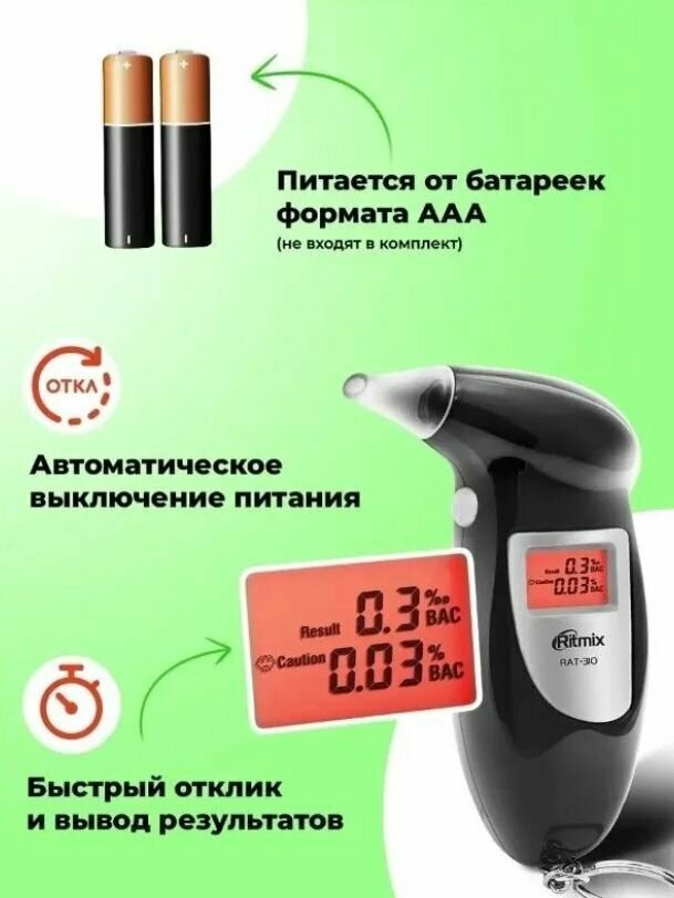 | Подробная комплектация | алкотестер - 1шт., мундштук - 5 шт., заводская упаковка |