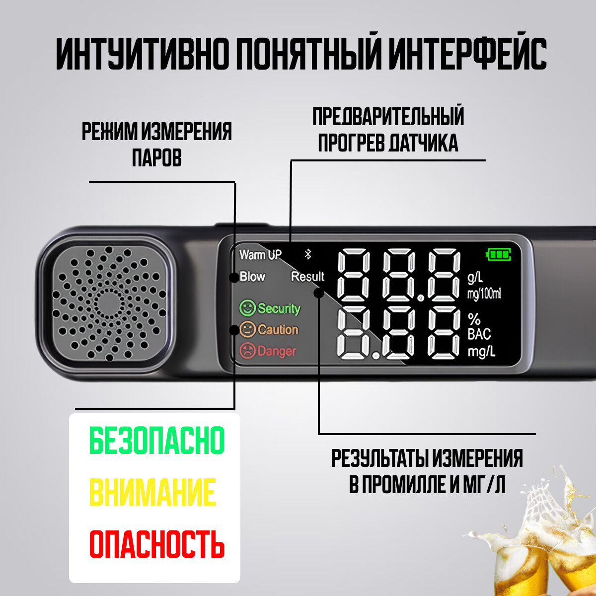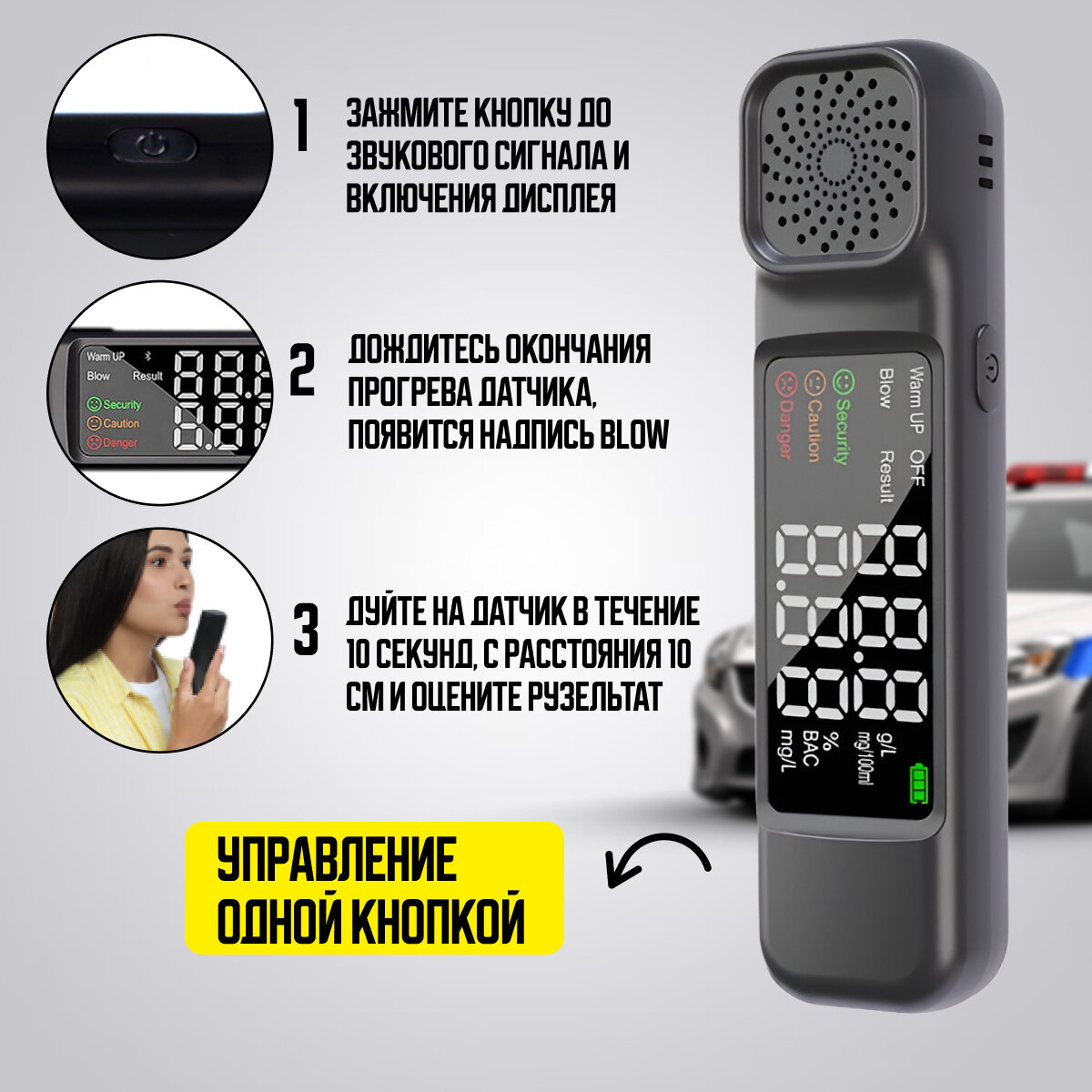 Алкотестер портативный цифровой персональный бесконтактный, экспресс тест на алкоголь, черный интересное: