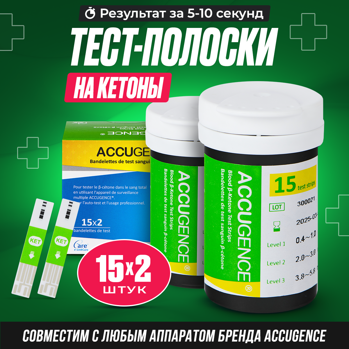 Тест полоски на кетоны AccuGence, 30 шт (подходят для кетометра AccuGence) интересное: