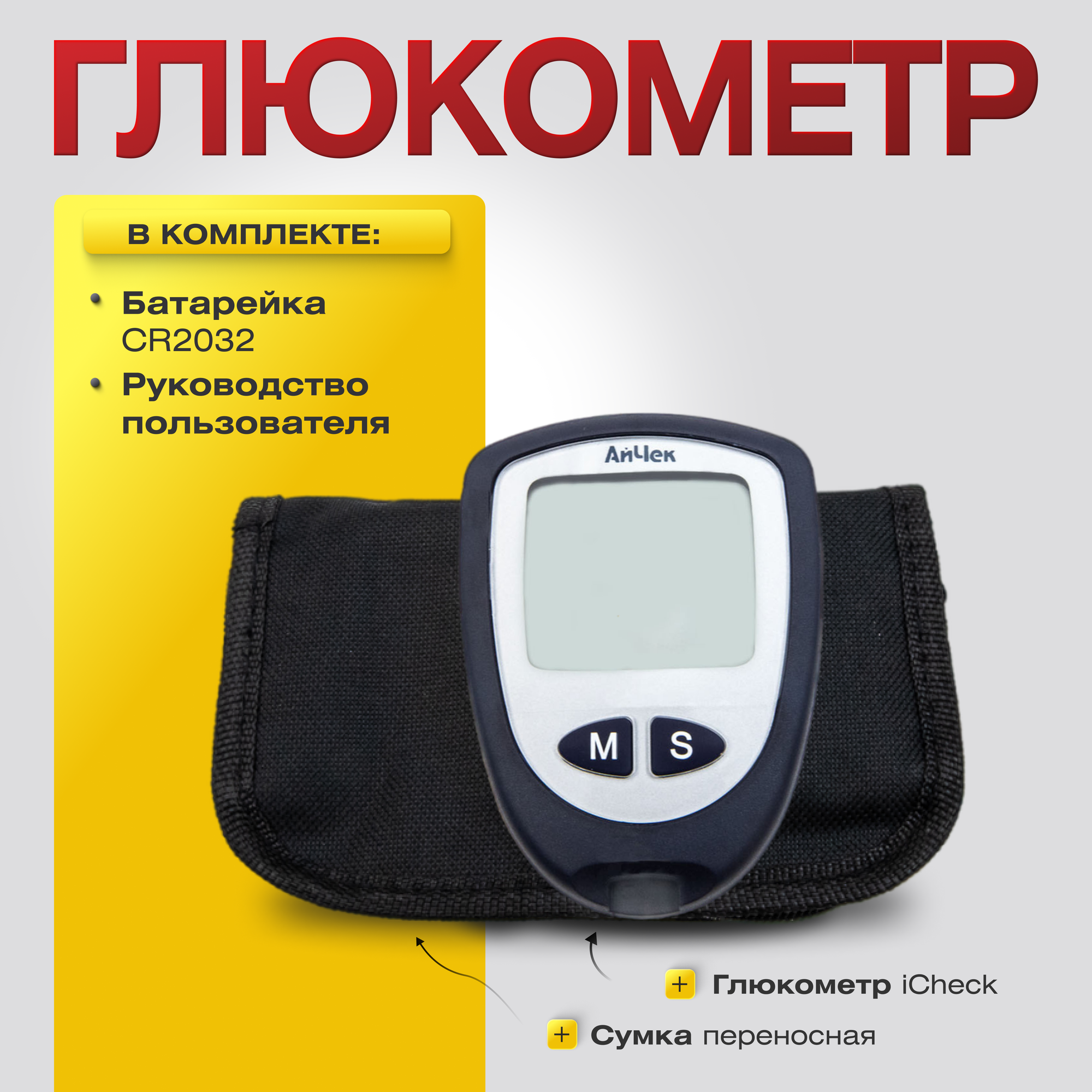 Купить Глюкометр iCheck 2 (стартовый набор глюкометр 1, сумка 1, батарейка 1, инструкция 1)