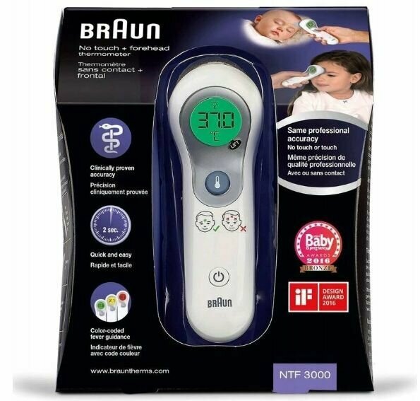 Ниже Вы можете прочитать отзывы на Бесконтактный термометр налобный Braun NTF3000, белый, ознакомится с подробными характеристиками, посмотреть интересные обзоры и фотографии на Бесконтактный термометр налобный Braun NTF3000, белый.