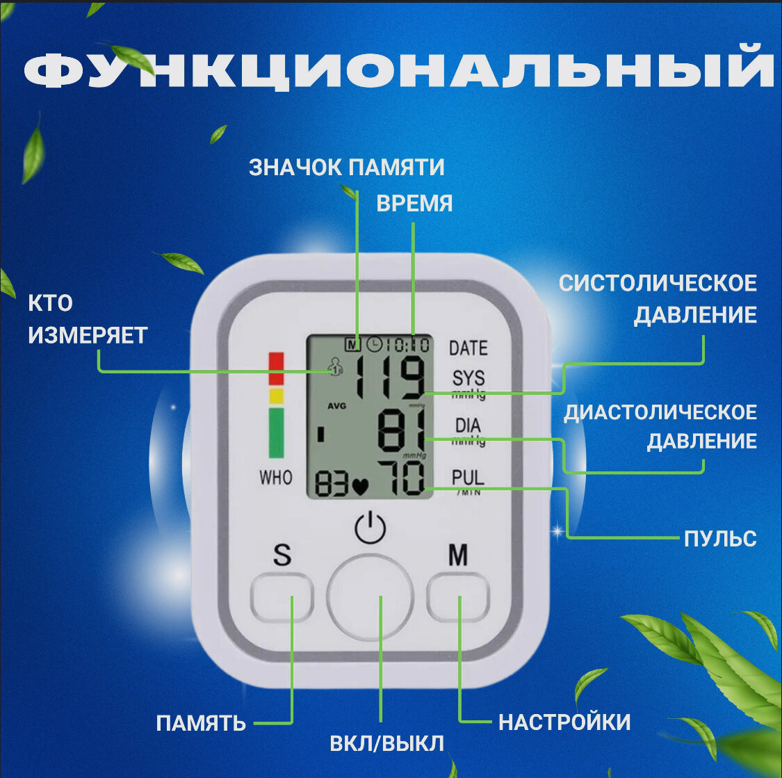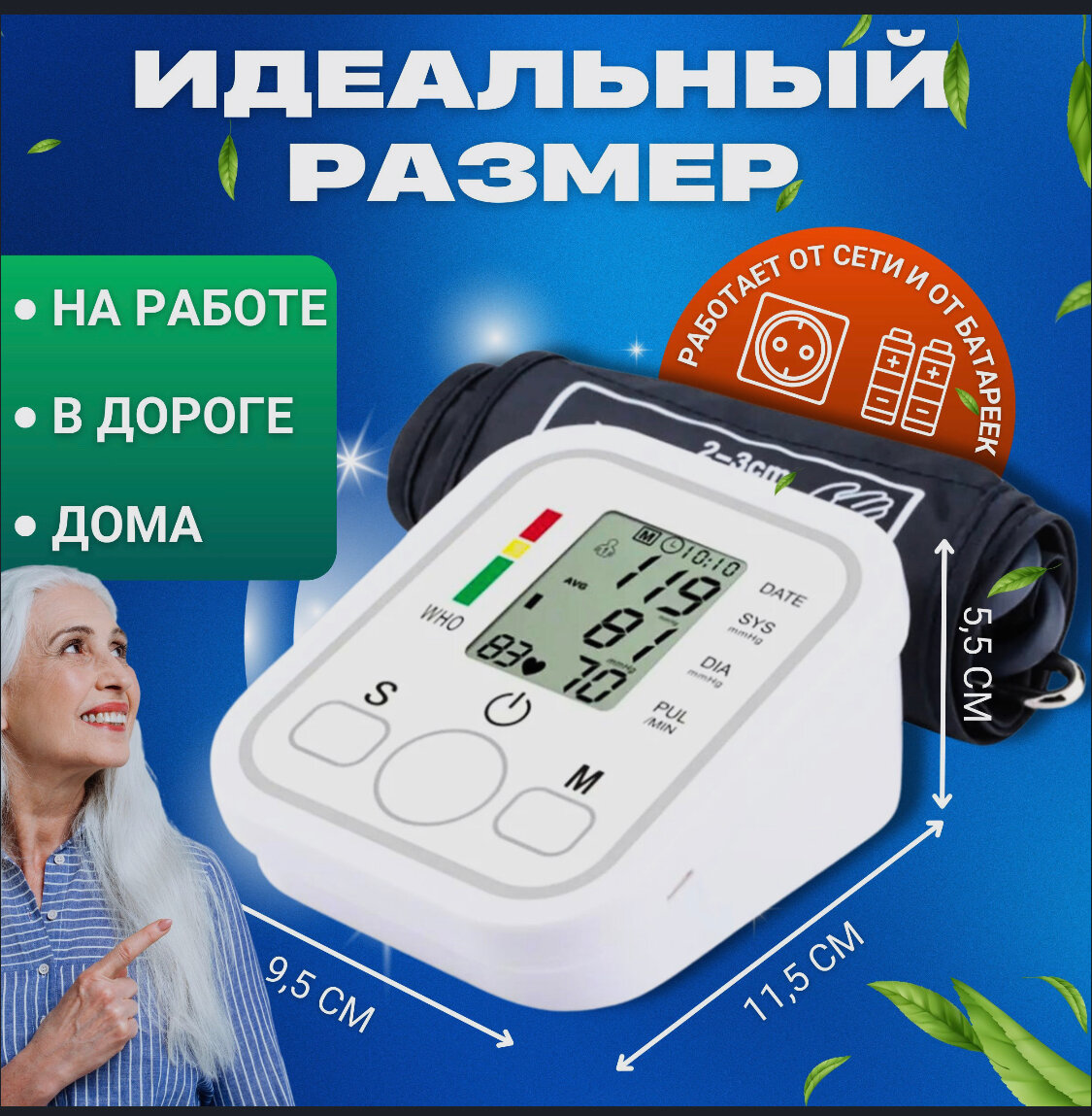 | Особенности | безболезненная манжета / фиксация даты и времени |