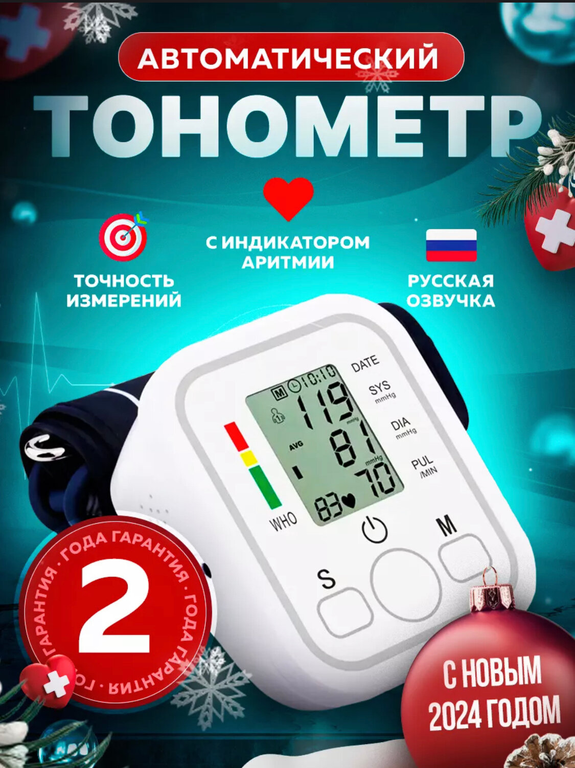 | Особенности | безболезненная манжета / фиксация даты и времени |