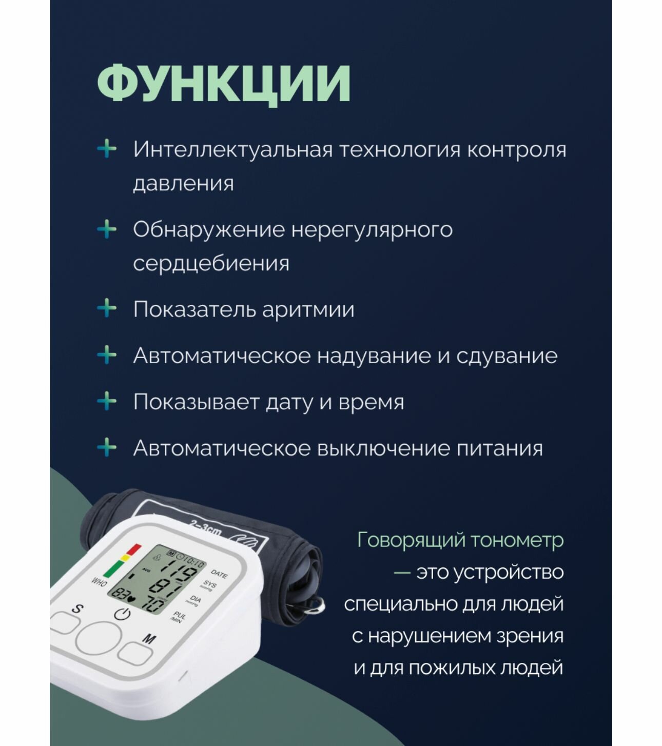 | Минимальный размер манжеты | 22 см |
