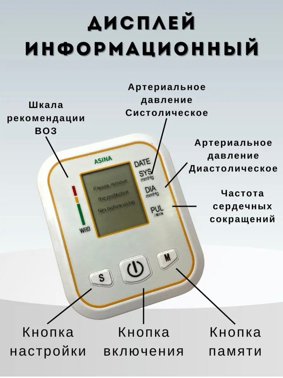 | Особенности | автоматическое отключение / фиксация даты и времени / шкала ВОЗ |