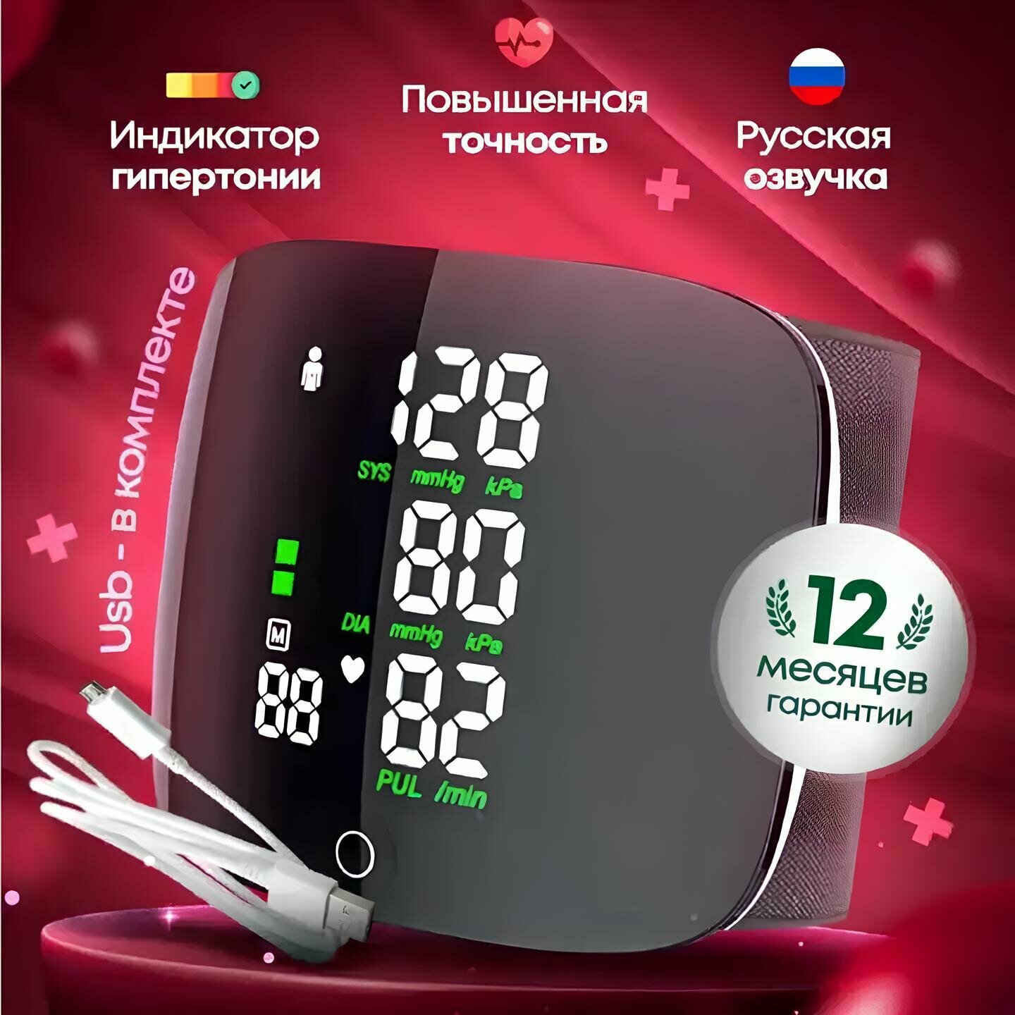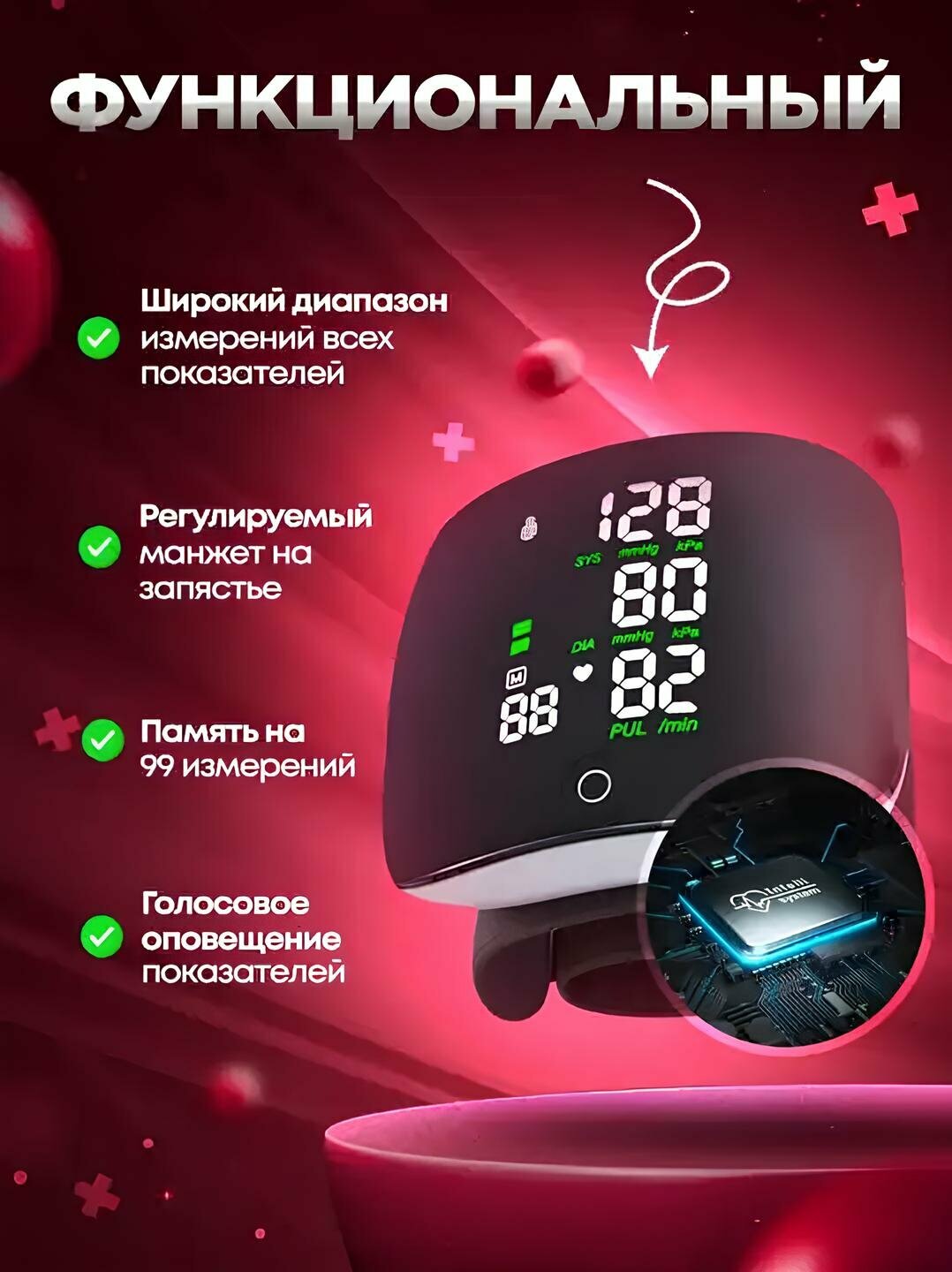 Говорящий автоматический тонометр на запястье для измерения давления интересное: