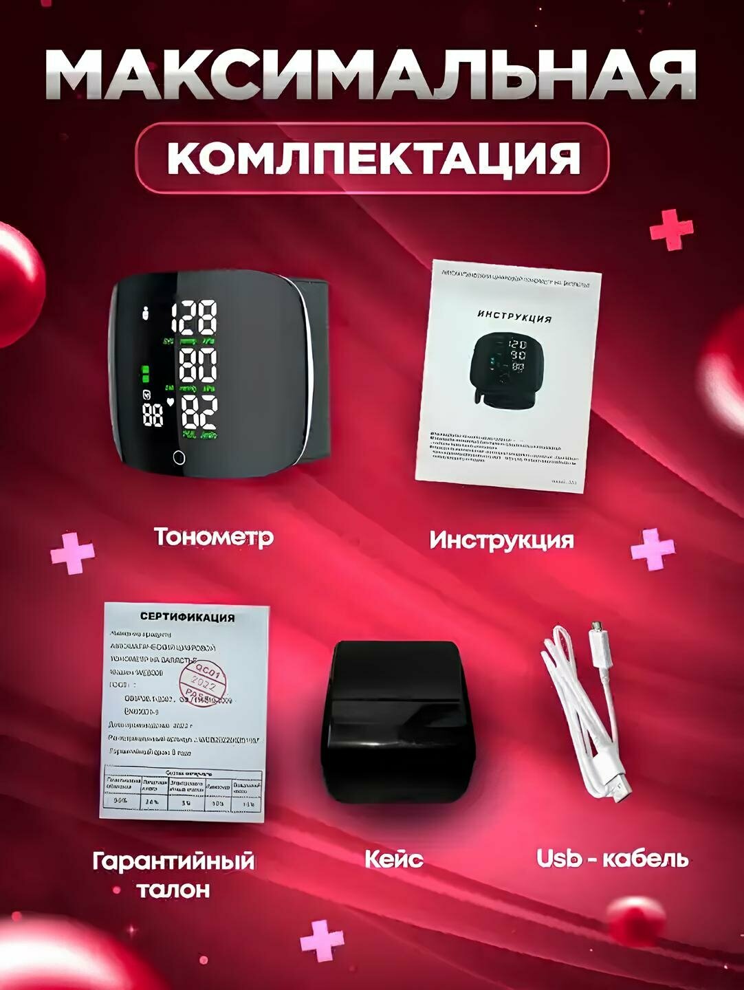 | Комплектация | Тонометр на запястье Инструкция Пластиковый короб для хранения провод USB |